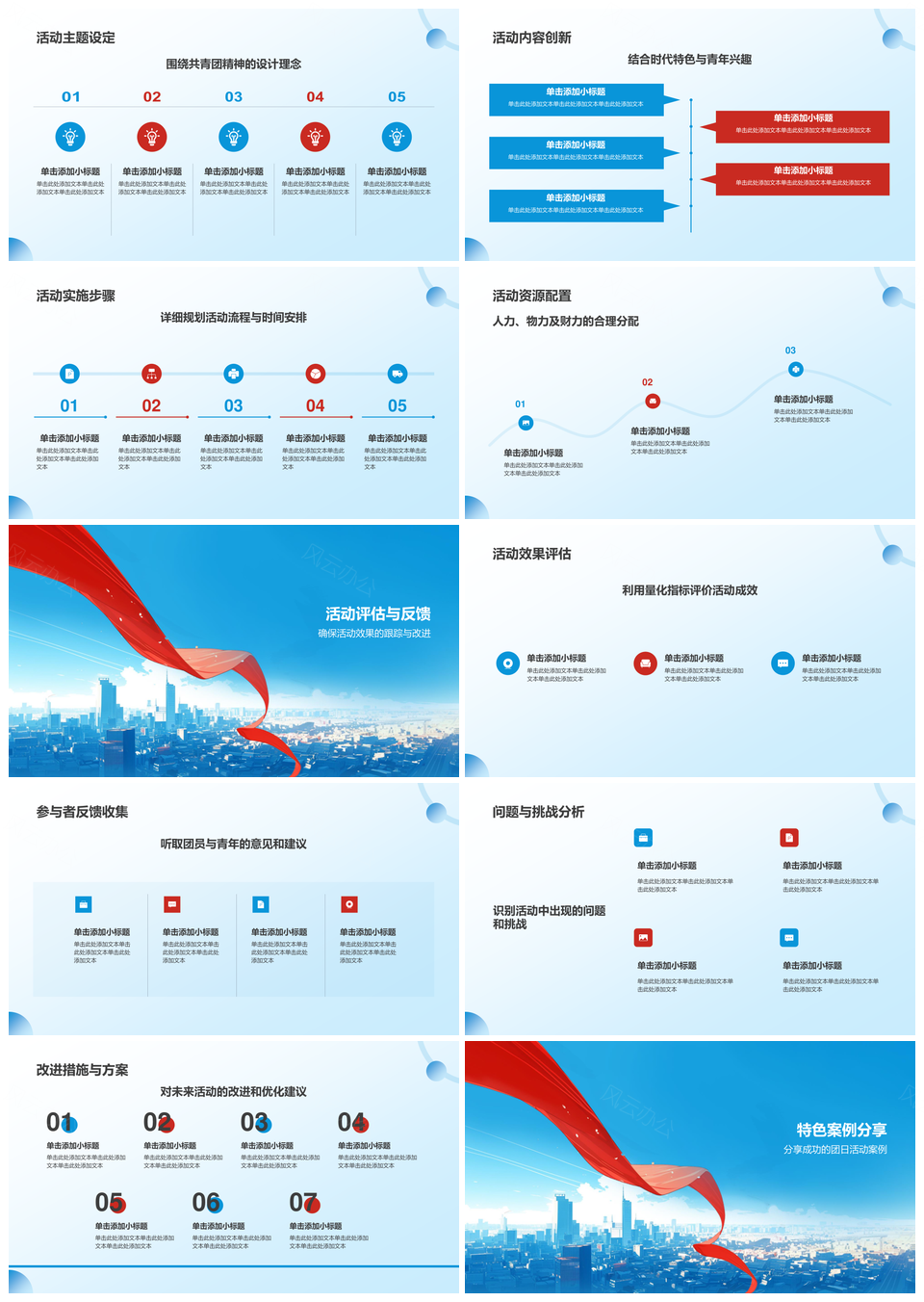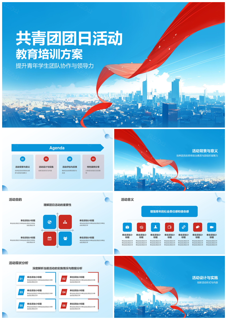 这是一张共青团团日教育培训提升协作领导力凝聚力PPT模板,包含共青团、团日、教育培训、提升、协作、领导力、凝聚力等主题内容,也可用作共青团团日教育培训提升、教育培训提升协作领导力、提升协作领导力凝聚力、共青团团日教育培训、团日教育培训提升、教育培训提升协作、提升协作领导力、协作领导力凝聚力、共青团团日、教育培训提升、协作领导力、领导力凝聚力、共青团教育培训、团日教育培训、教育培训协作等PPT场景使用。 风云办公提供的共青团团日教育培训提升协作领导力凝聚力PPT模板,下载格式为pptx,一共22页,作品中文字及图均可以修改和编辑,图片更改请在作品中右键图片并更换,文字修改请直接点击文字进行修改。
