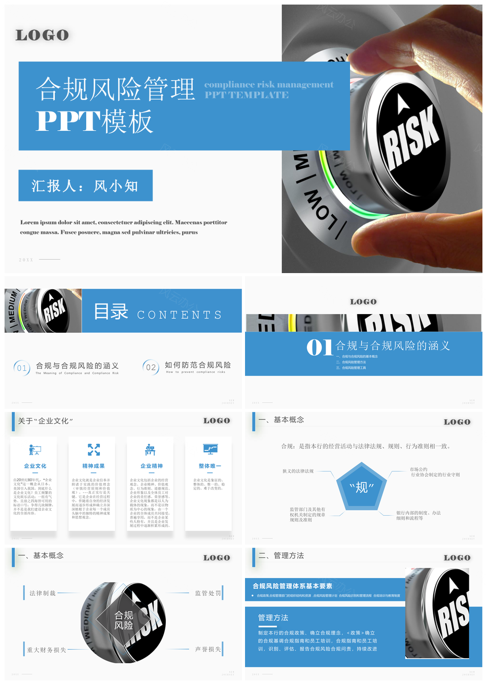 2025蓝色商务企业合规风险管理培训PPT模板推荐