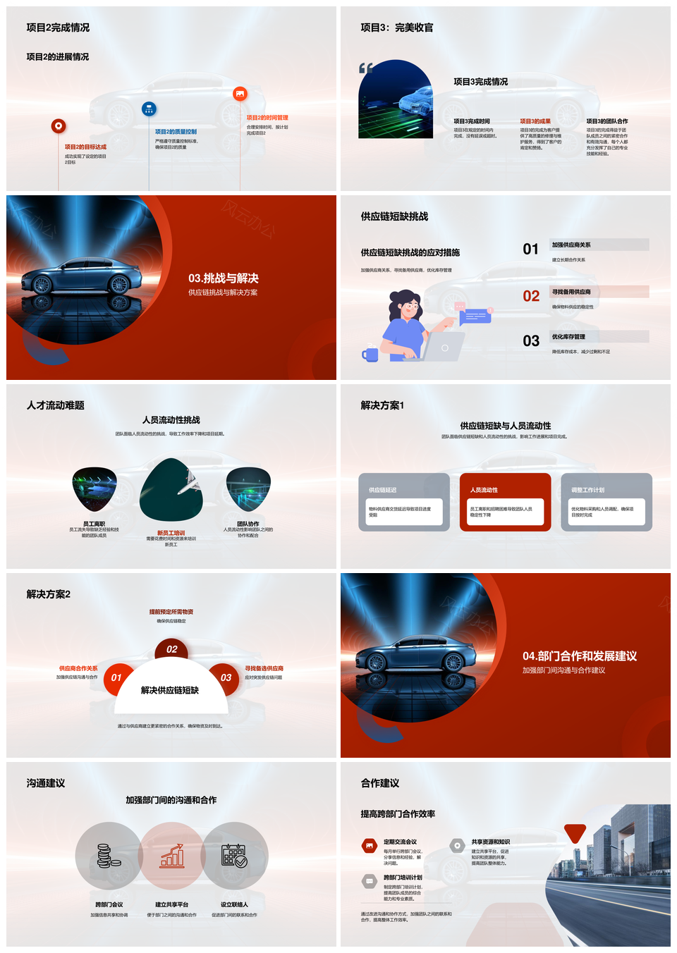 汽车研发年度创新成果项目进度电池自动驾驶团队协作PPT模板