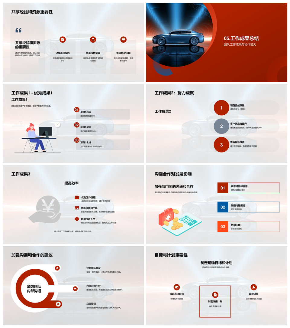汽车维修团队协作创新成果经验共享进展PPT模板推荐