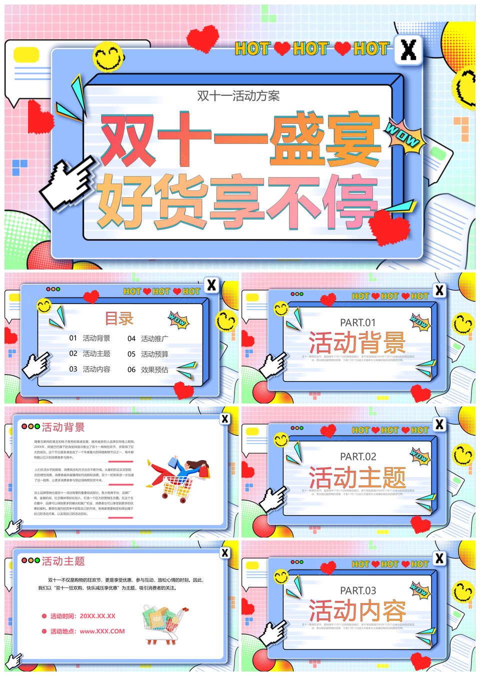 2025彩色可爱卡通双十一活动策划方案书PPT模板