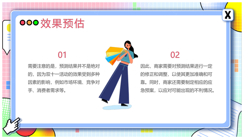 这是一张2025红色孟菲斯风双十一狂欢营销策划方案PPT模板,包含2025、红色、孟菲斯风、双十一、狂欢、营销、策划方案等主题内容,也可用作2025红色孟菲斯风双十一狂欢、红色孟菲斯风双十一狂欢营销、孟菲斯风双十一狂欢营销策划、双十一狂欢营销策划方案、2025红色孟菲斯风狂欢、红色孟菲斯风营销策划、孟菲斯风双十一营销、双十一狂欢策划方案、2025红色双十一狂欢、红色狂欢营销策划方案、孟菲斯风狂欢营销、双十一营销策划、红色孟菲斯风、孟菲斯风双十一、狂欢营销策划等PPT场景使用。 风云办公提供的2025红色孟菲斯风双十一狂欢营销策划方案PPT模板,下载格式为pptx,一共19页,作品中文字及图均可以修改和编辑,图片更改请在作品中右键图片并更换,文字修改请直接点击文字进行修改。