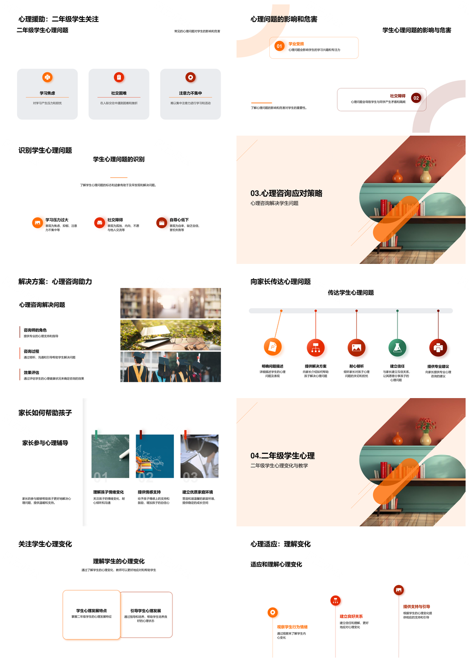 风云办公提供的二年级学生心理疏导教师关怀策略PPT模板,下载格式为pptx,一共23页,作品中文字及图均可以修改和编辑,图片更改请在作品中右键图片并更换,文字修改请直接点击文字进行修改。