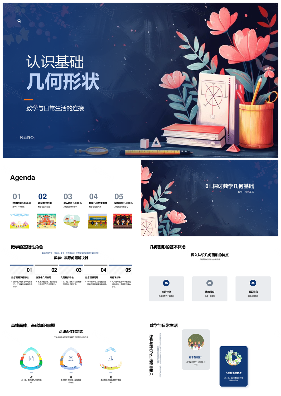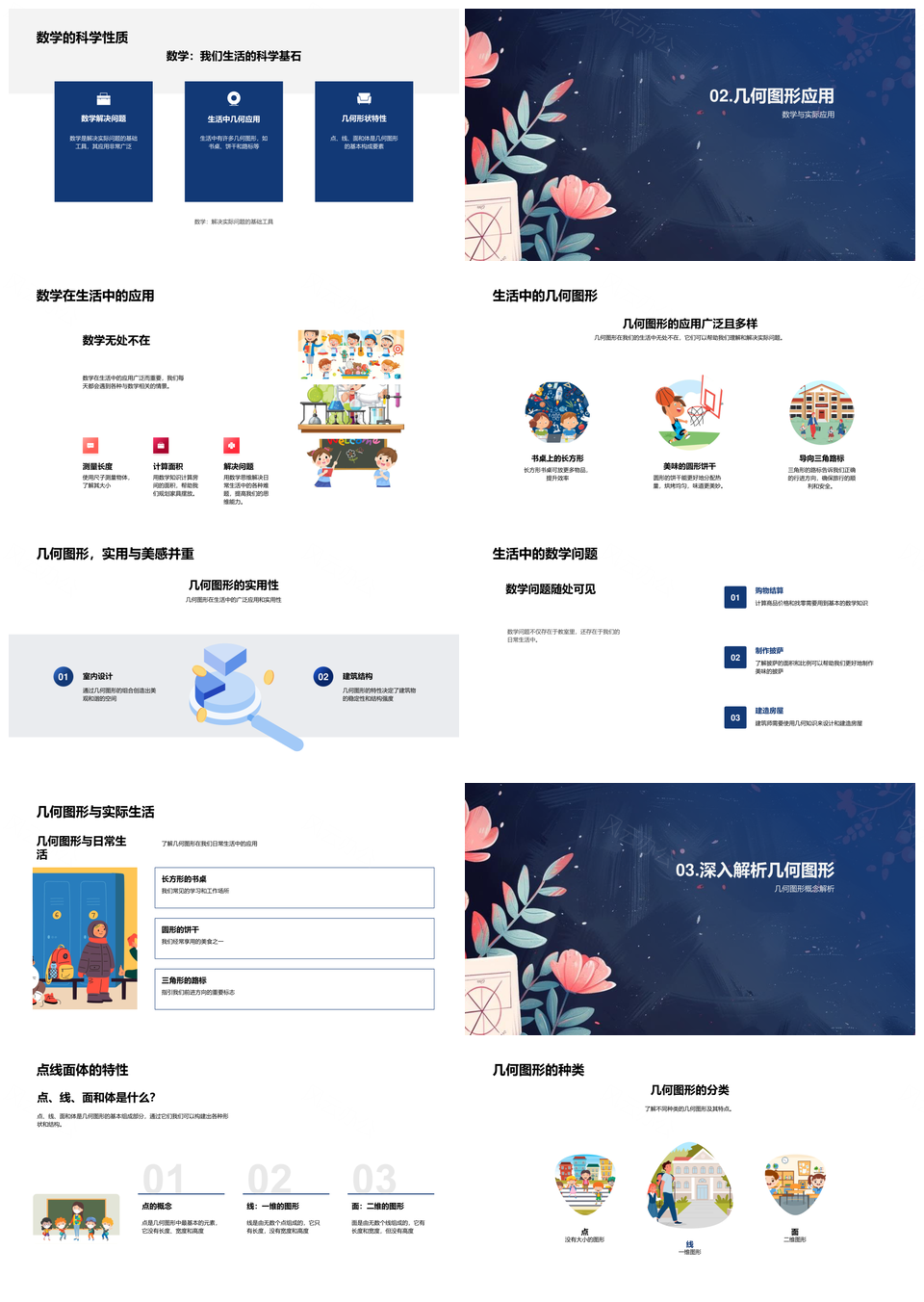 小学数学几何图形点线面体多维应用教学PPT模板