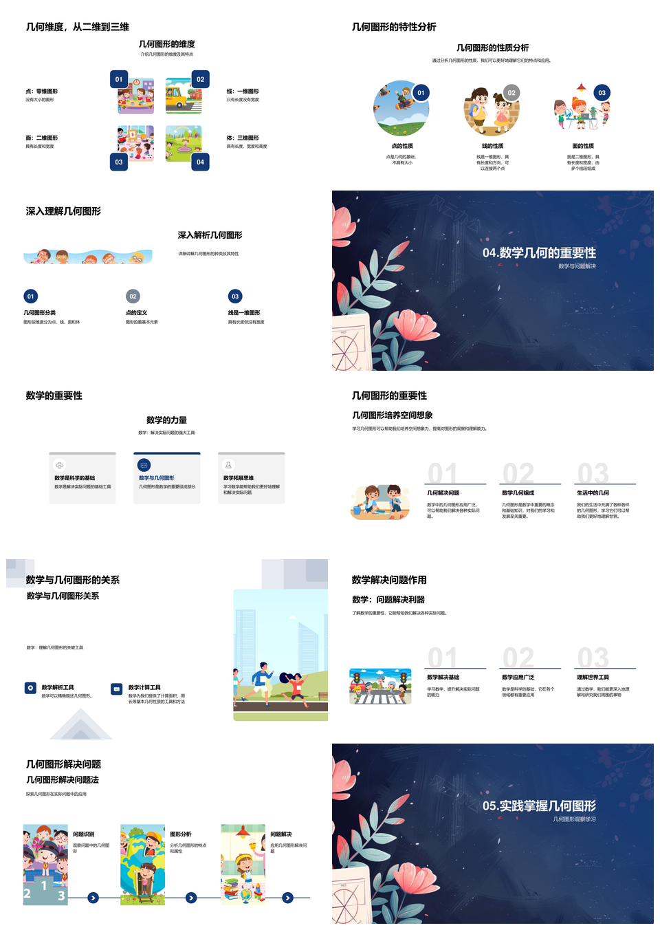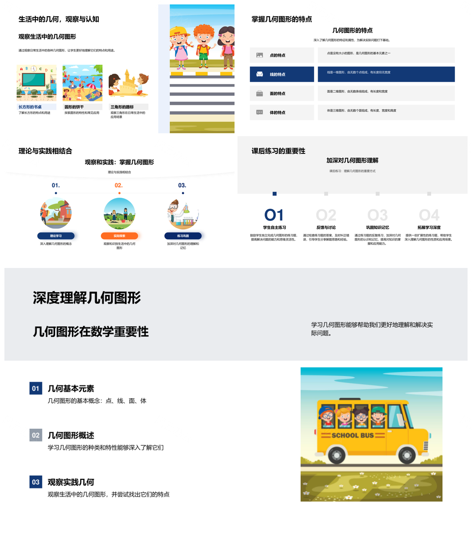 小学数学几何图形点线面体多维应用教学PPT模板推荐