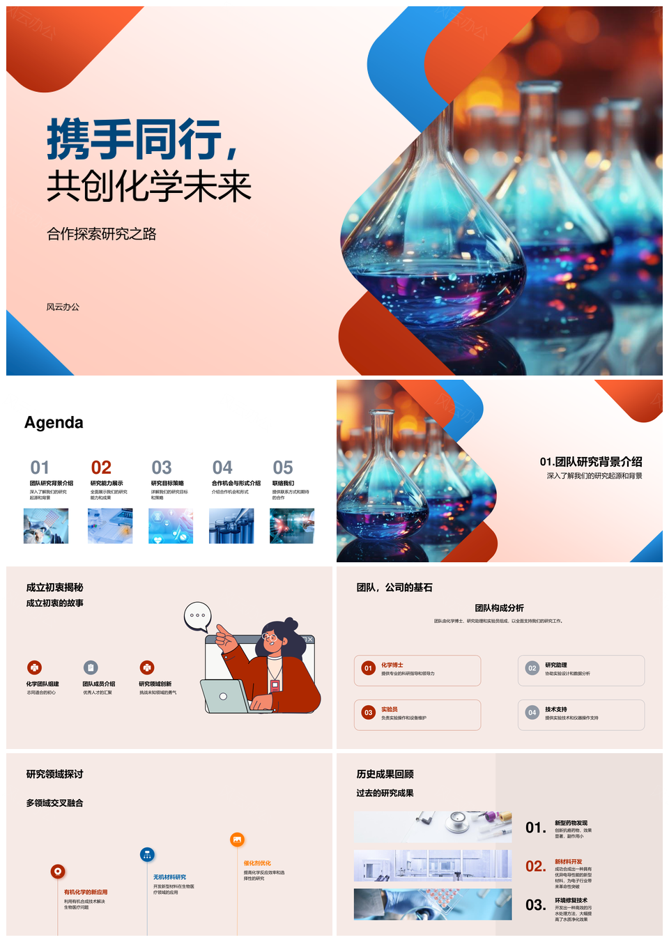风云办公提供的化学研究团队合作创新合成方法PPT模板,下载格式为pptx,一共27页,作品中文字及图均可以修改和编辑,图片更改请在作品中右键图片并更换,文字修改请直接点击文字进行修改。