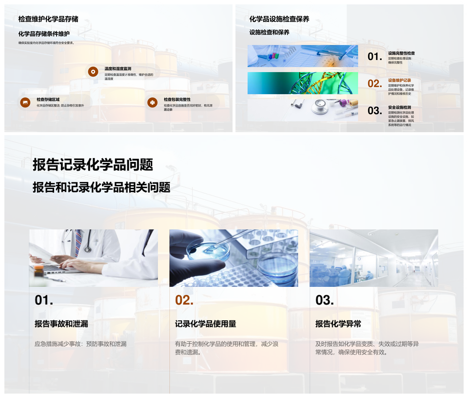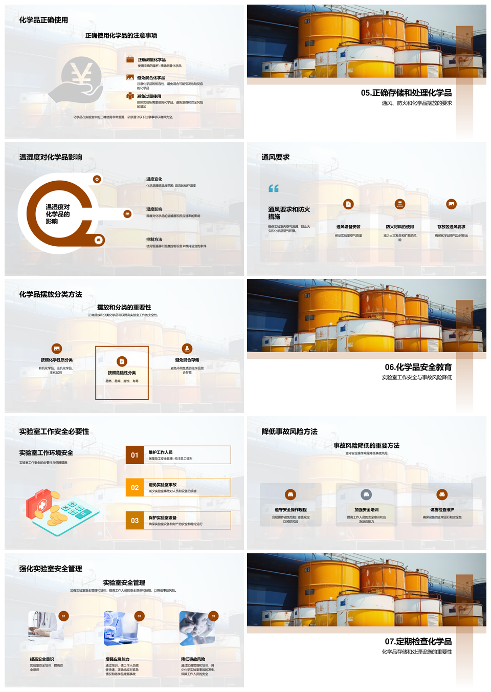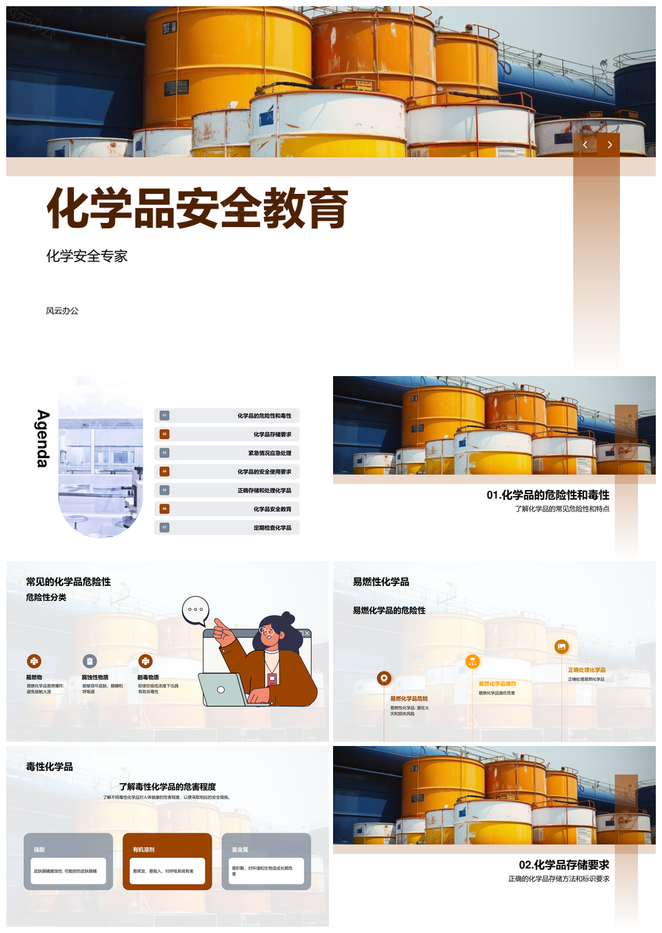 风云办公提供的化学品安全存储危险标识应急防护教育PPT模板,下载格式为pptx,一共31页,作品中文字及图均可以修改和编辑,图片更改请在作品中右键图片并更换,文字修改请直接点击文字进行修改。