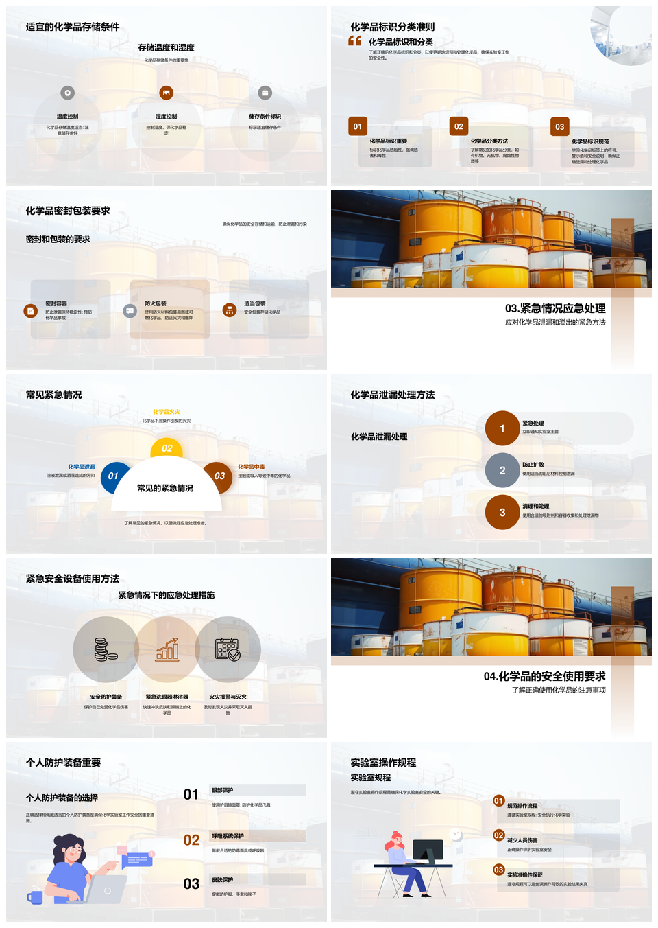 这是一张化学品安全存储危险标识应急防护教育PPT模板,包含化学品、安全、存储、危险、标识、应急、防护、教育等主题内容,也可用作化学品安全存储危险、安全存储危险标识、存储危险标识应急、危险标识应急防护、标识应急防护教育、化学品安全存储、安全存储危险、存储危险标识、危险标识应急、标识应急防护、应急防护教育、化学品安全、安全存储、存储危险、危险标识等PPT场景使用。