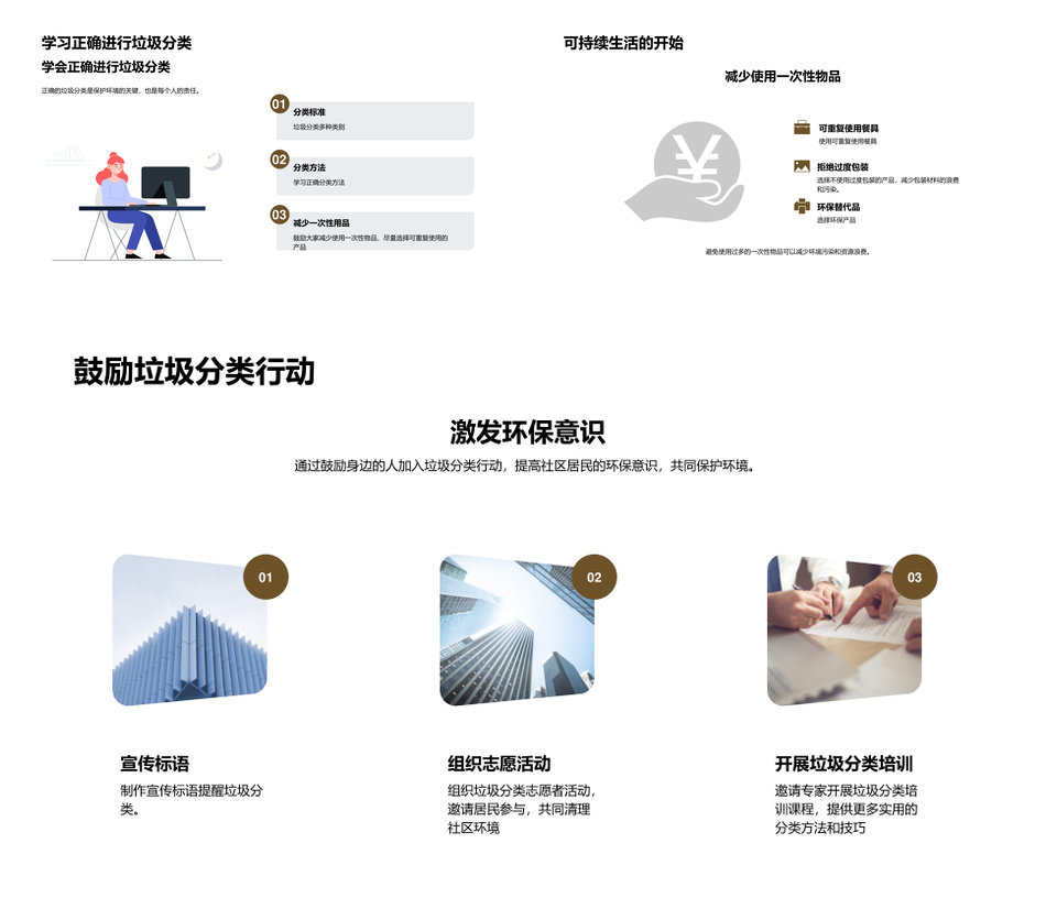 这是一张社区居民垃圾分类讲座共建美丽城市减污PPT模板,包含社区居民、垃圾分类、讲座、共建、美丽城市、减污等主题内容,也可用作社区居民垃圾分类讲座共建、垃圾分类讲座共建美丽城市、讲座共建美丽城市减污、社区居民垃圾分类讲座、垃圾分类讲座共建、讲座共建美丽城市、共建美丽城市减污、社区居民垃圾分类、垃圾分类讲座、讲座共建、共建美丽城市、美丽城市减污等PPT场景使用。 风云办公提供的社区居民垃圾分类讲座共建美丽城市减污PPT模板,下载格式为pptx,一共21页,作品中文字及图均可以修改和编辑,图片更改请在作品中右键图片并更换,文字修改请直接点击文字进行修改。