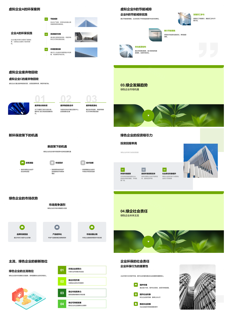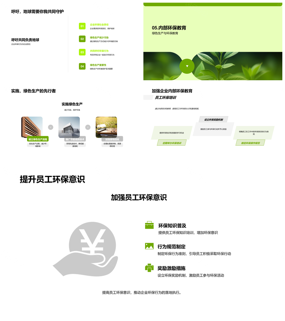 风云办公提供的企业践行绿色社会责任先行PPT模板,下载格式为pptx,一共23页,作品中文字及图均可以修改和编辑,图片更改请在作品中右键图片并更换,文字修改请直接点击文字进行修改。