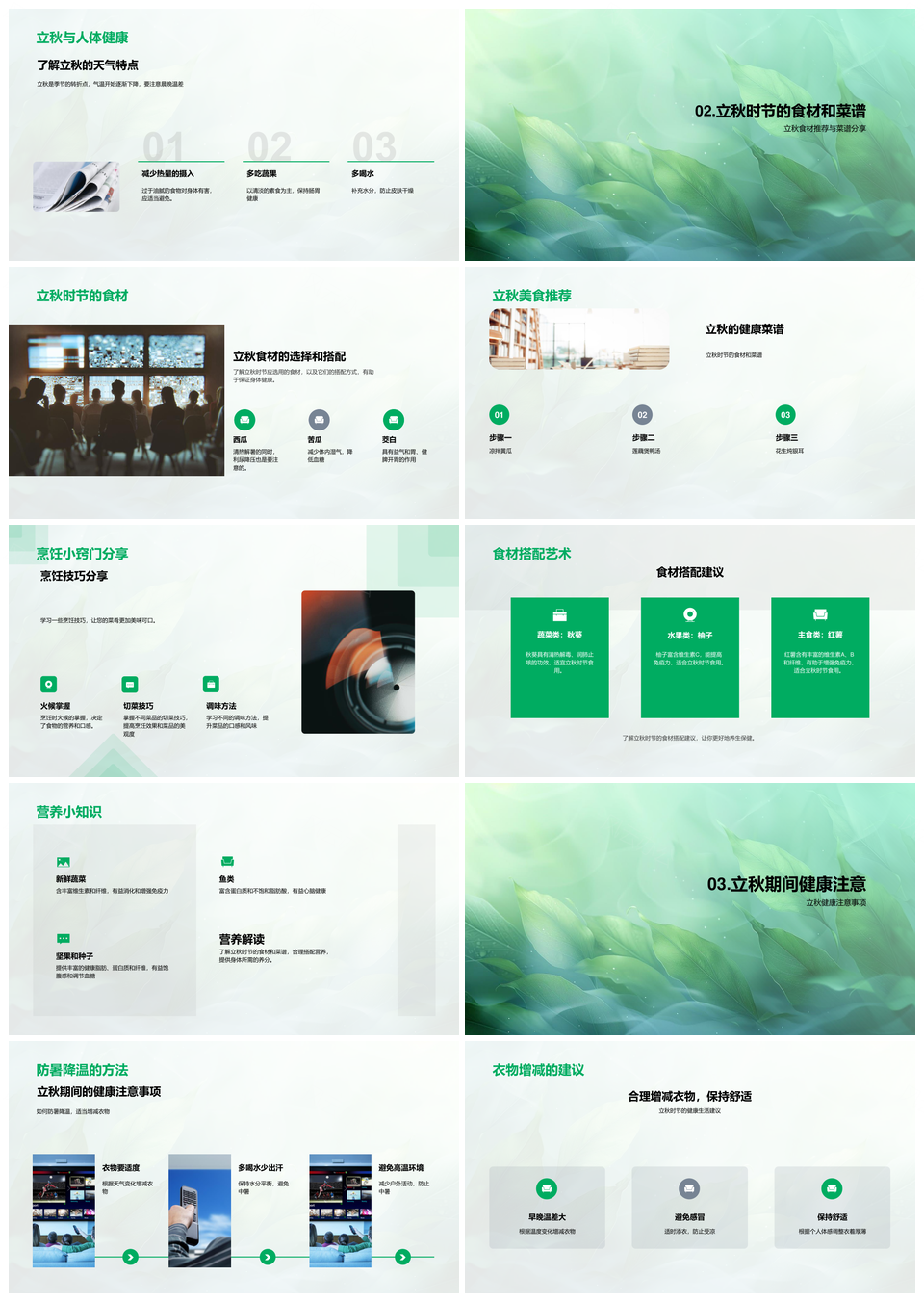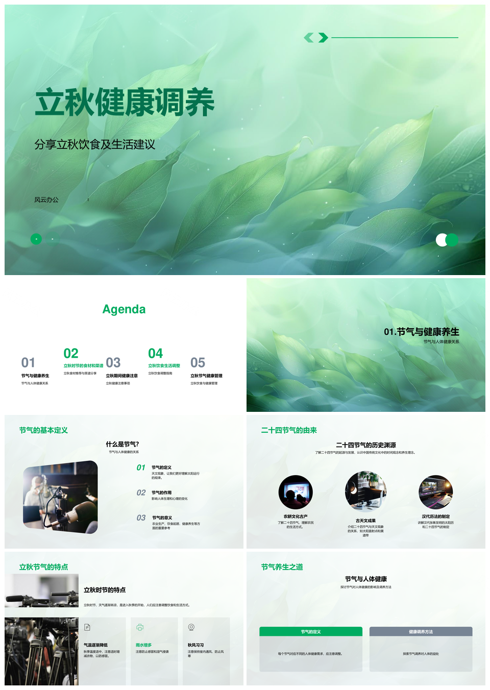 风云办公提供的立秋健康饮食生活调养防暑菜谱PPT模板,下载格式为pptx,一共33页,作品中文字及图均可以修改和编辑,图片更改请在作品中右键图片并更换,文字修改请直接点击文字进行修改。