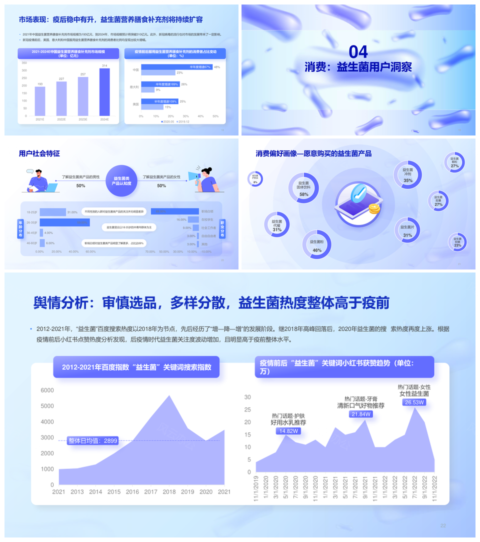 风云办公提供的益生菌电商消费保健品数据研究白皮书PPT模板,下载格式为pptx,一共23页,作品中文字及图均可以修改和编辑,图片更改请在作品中右键图片并更换,文字修改请直接点击文字进行修改。