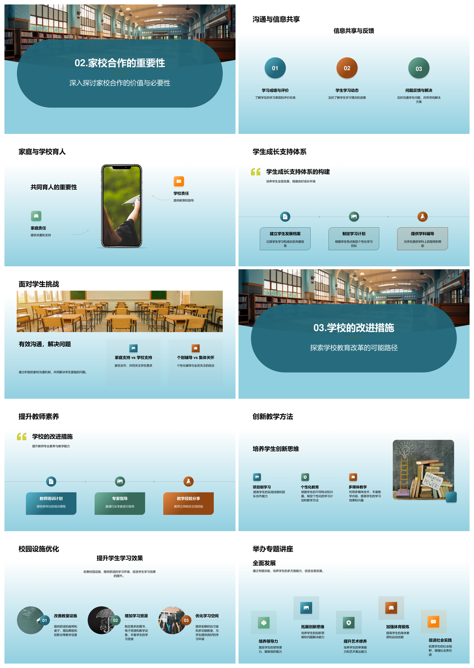这是一张家校共育创新教学共建学生成长支持体系PPT模板,包含家校、共育、创新、教学、共建、学生、成长、支持体系等主题内容,也可用作家校共育创新教学、共育创新教学共建、创新教学共建学生、教学共建学生成长、共建学生成长支持、学生成长支持体系、家校共育创新共建、共育创新教学共建、创新共建学生成长、教学共建支持体系、共建支持学生体系、学生支持体系共建、家校共育学生成长、家校共建成长支持、创新教学支持体系等PPT场景使用。 风云办公提供的家校共育创新教学共建学生成长支持体系PPT模板,下载格式为pptx,一共28页,作品中文字及图均可以修改和编辑,图片更改请在作品中右键图片并更换,文字修改请直接点击文字进行修改。