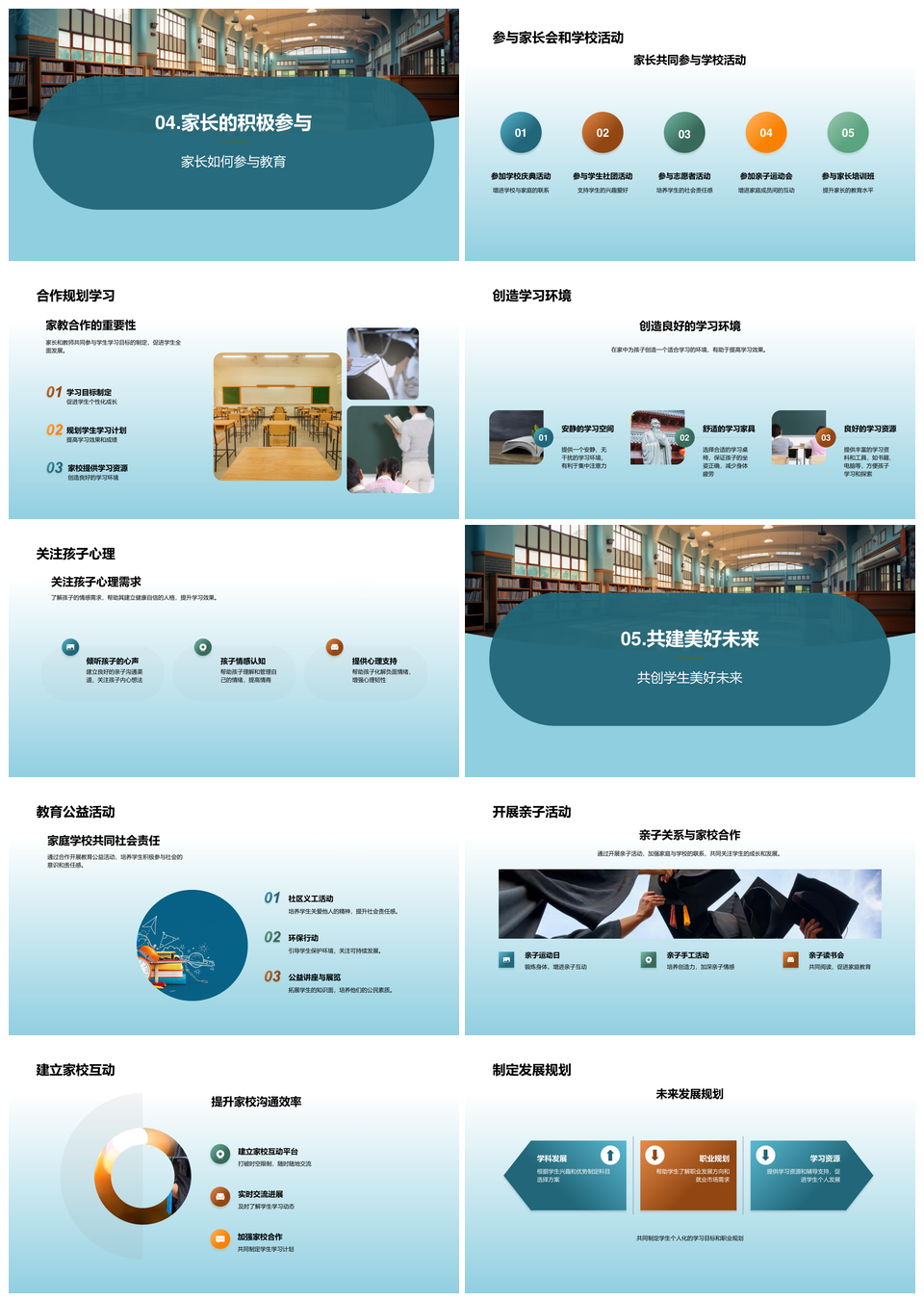 家校共育创新教学共建学生成长支持体系PPT模板推荐