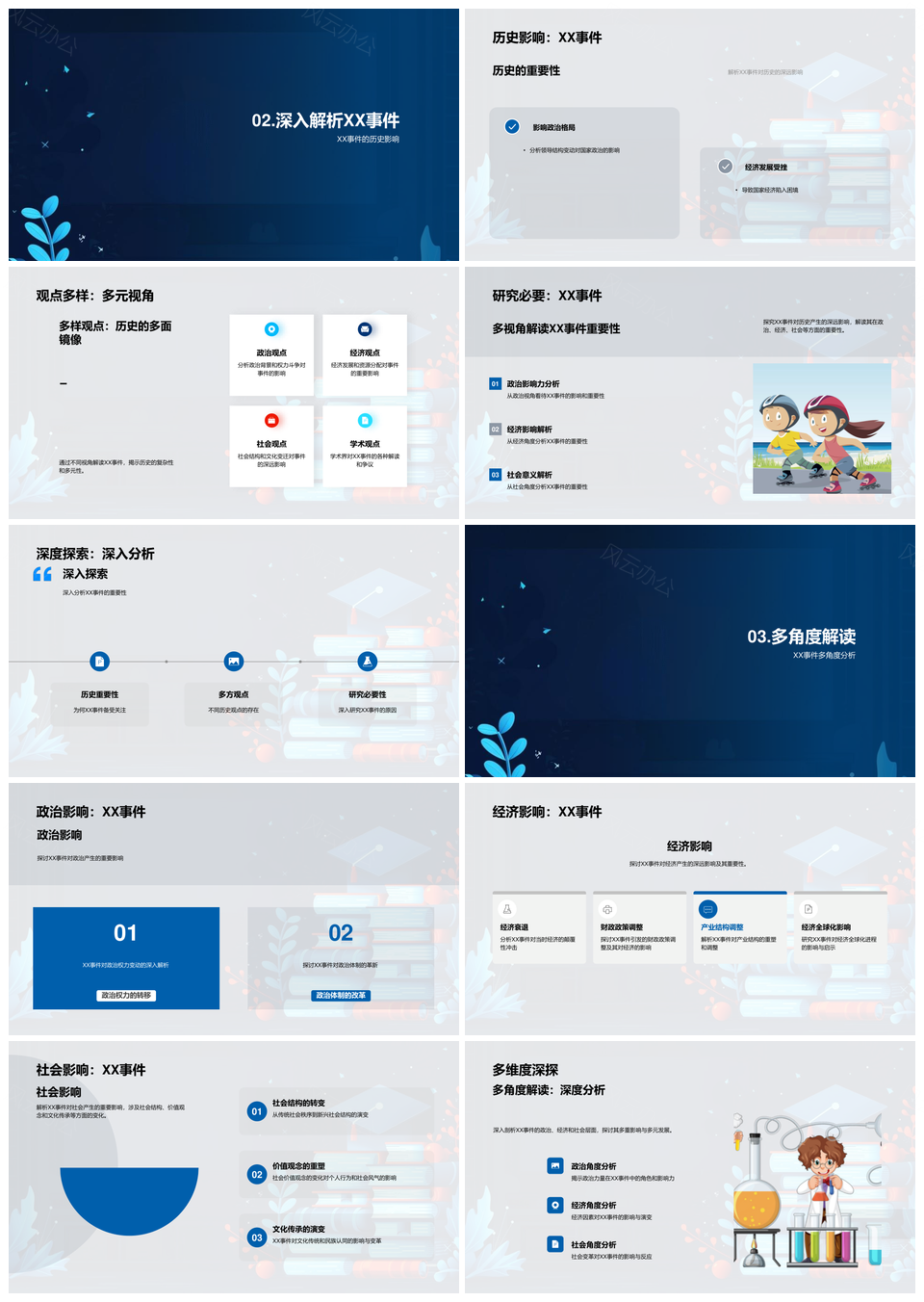 风云办公提供的XX事件多维历史影响研究解析PPT模板,下载格式为pptx,一共28页,作品中文字及图均可以修改和编辑,图片更改请在作品中右键图片并更换,文字修改请直接点击文字进行修改。