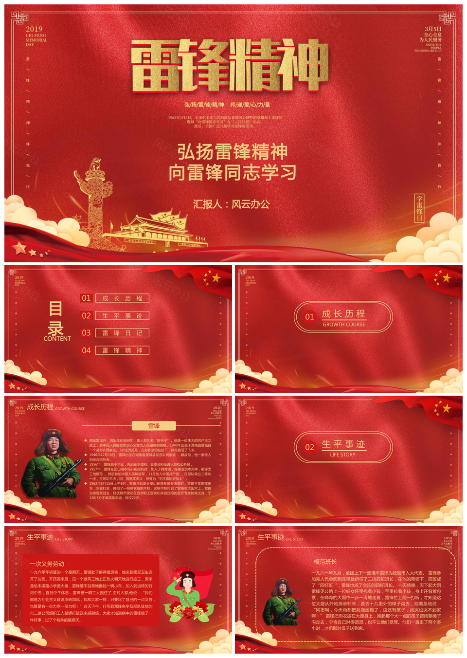 红色学雷锋精神纪念日工作汇报总结PPT模板