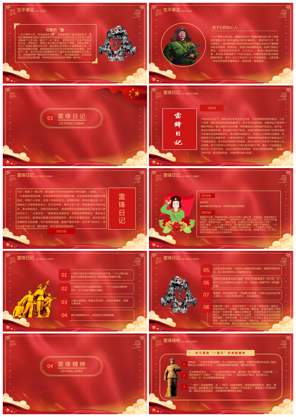 红色学雷锋精神日党政宣传教育教学服务人民课件PPT模板
