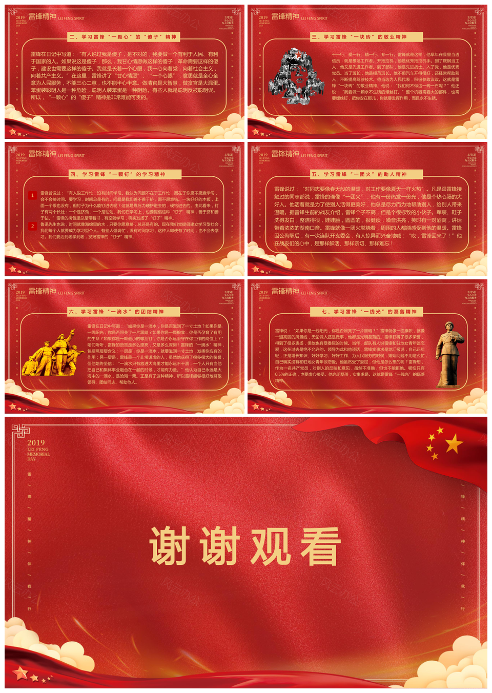 这是一张红色大气学雷锋精神PPT模板,包含红色、大气、学雷锋精神等主题内容,也可用作红色、大气、雷锋、精神 红色大气雷锋精神、红色雷锋精神、大气雷锋精神、红色大气精神、红色大气、雷锋精神、红色精神、大气精神等PPT场景使用。 风云办公提供的红色大气学雷锋精神PPT模板,下载格式为pptx,一共23页,作品中文字及图均可以修改和编辑,图片更改请在作品中右键图片并更换,文字修改请直接点击文字进行修改。