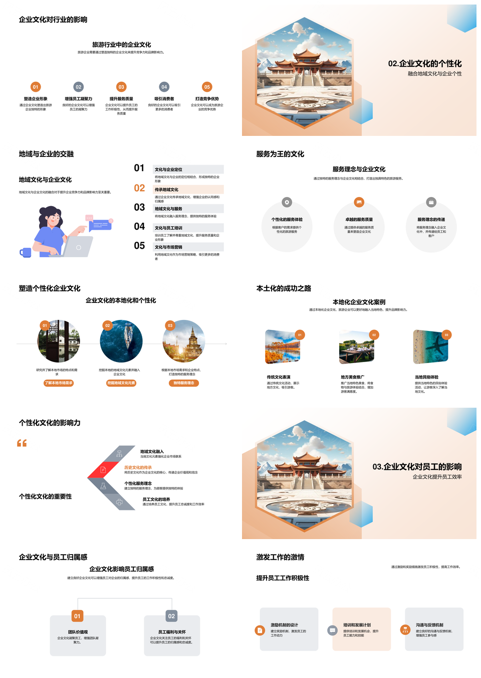 这是一张地域建筑文化视域下旅游业企业文化核心竞争力PPT模板,包含地域、建筑、文化、视域、旅游业、企业、文化、核心、竞争力等主题内容,也可用作地域建筑文化视域、地域建筑文化旅游、地域建筑文化企业、地域建筑文化核心、旅游业企业文化核心、旅游业企业文化竞争、旅游业企业竞争力、视域下旅游业企业、视域下企业文化、地域文化旅游企业、文化旅游企业核心、文化视域下旅游、建筑文化视域下、企业核心竞争力、文化核心竞争力等PPT场景使用。 风云办公提供的地域建筑文化视域下旅游业企业文化核心竞争力PPT模板,下载格式为pptx,一共33页,作品中文字及图均可以修改和编辑,图片更改请在作品中右键图片并更换,文字修改请直接点击文字进行修改。