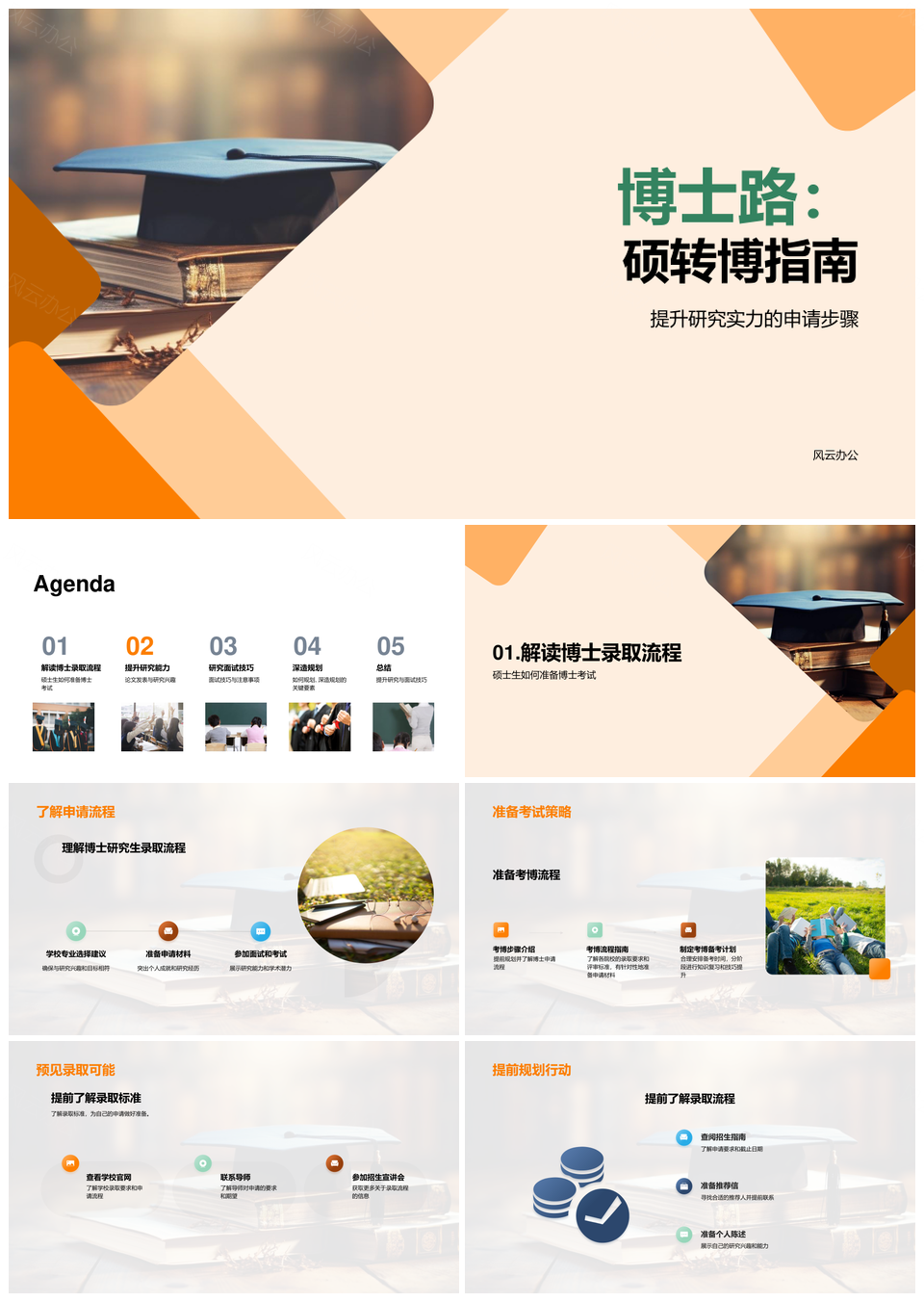 风云办公提供的硕转博研究实力提升与申请面试攻略PPT模板,下载格式为pptx,一共27页,作品中文字及图均可以修改和编辑,图片更改请在作品中右键图片并更换,文字修改请直接点击文字进行修改。