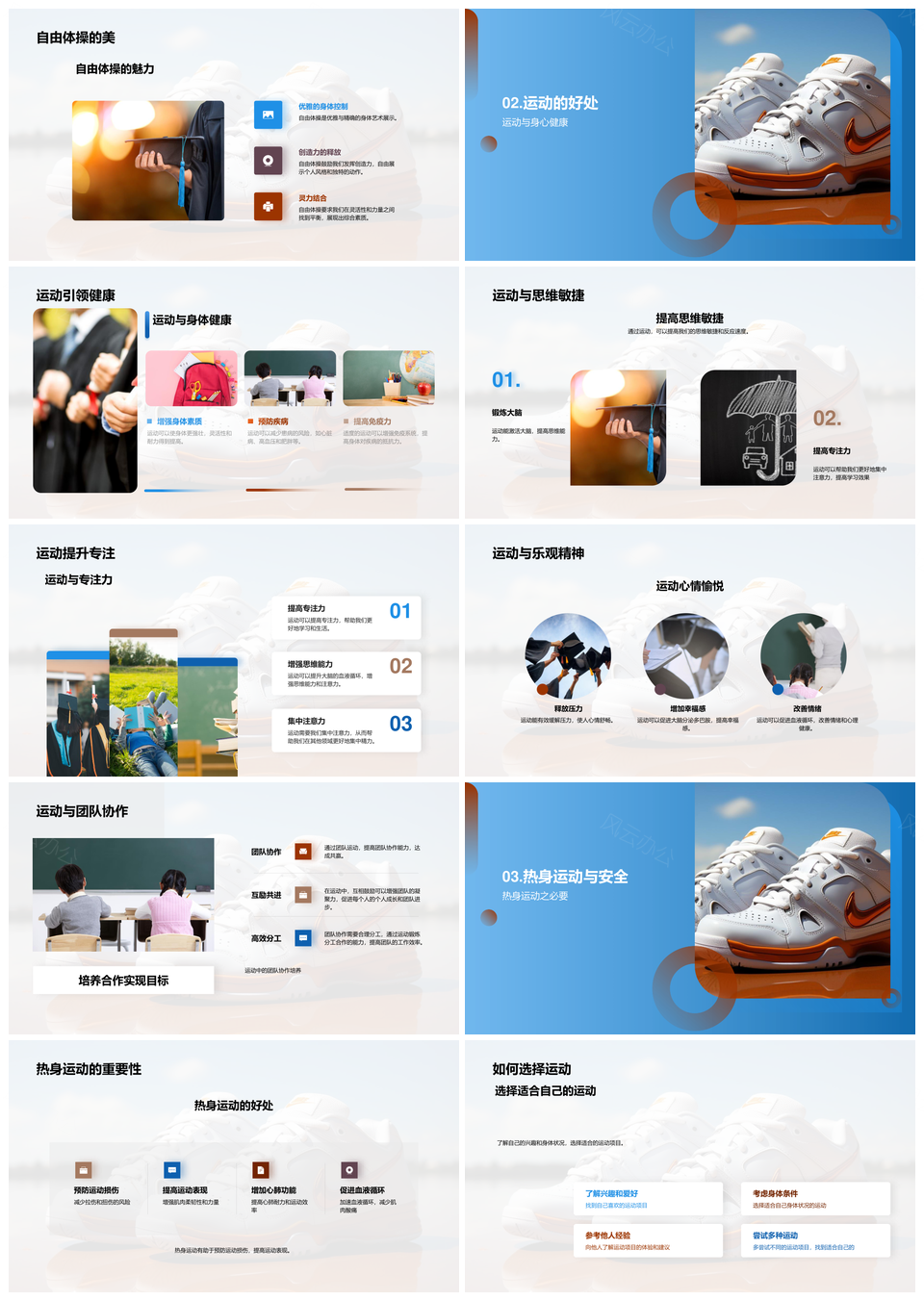 风云办公提供的二年级体育课运动乐趣益处与热身安全PPT模板,下载格式为pptx,一共33页,作品中文字及图均可以修改和编辑,图片更改请在作品中右键图片并更换,文字修改请直接点击文字进行修改。