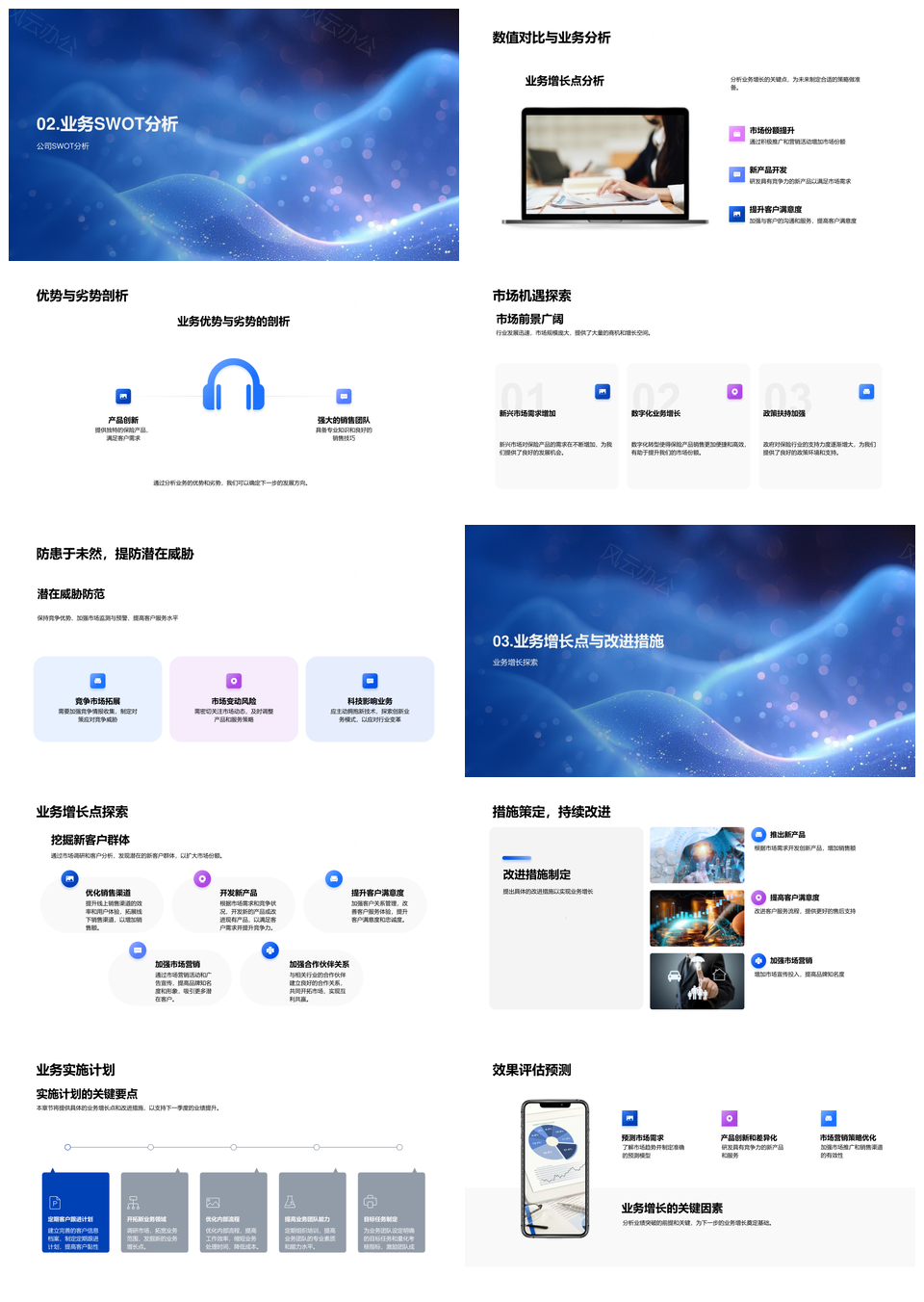 保险业务季度业绩分析SWOT增长策略市场机遇PPT模板推荐