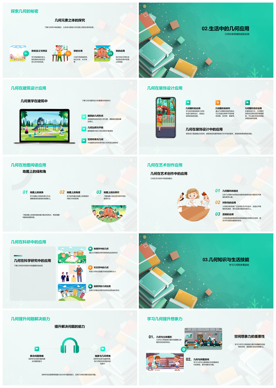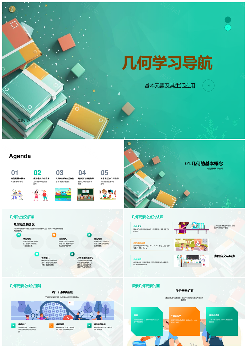 2025几何基本元素生活应用学习导航PPT模板推荐