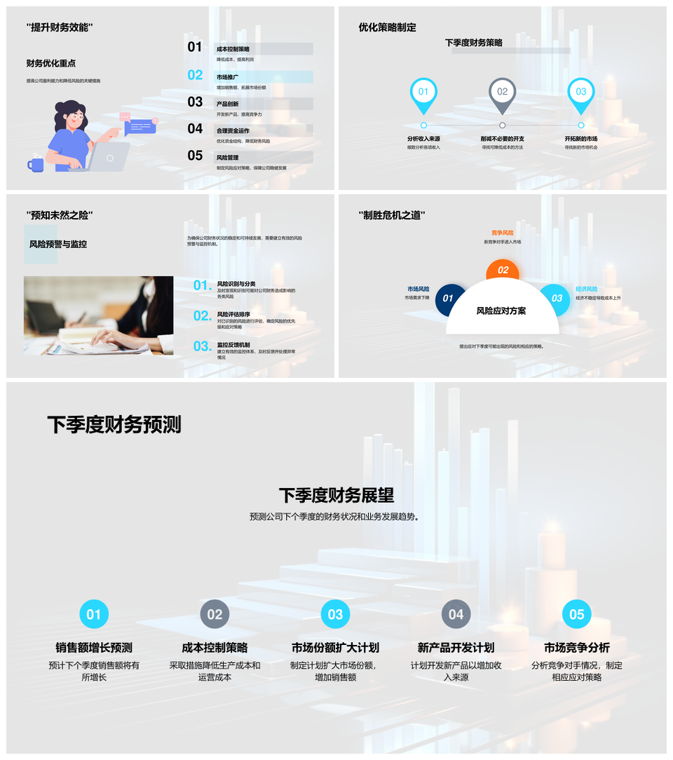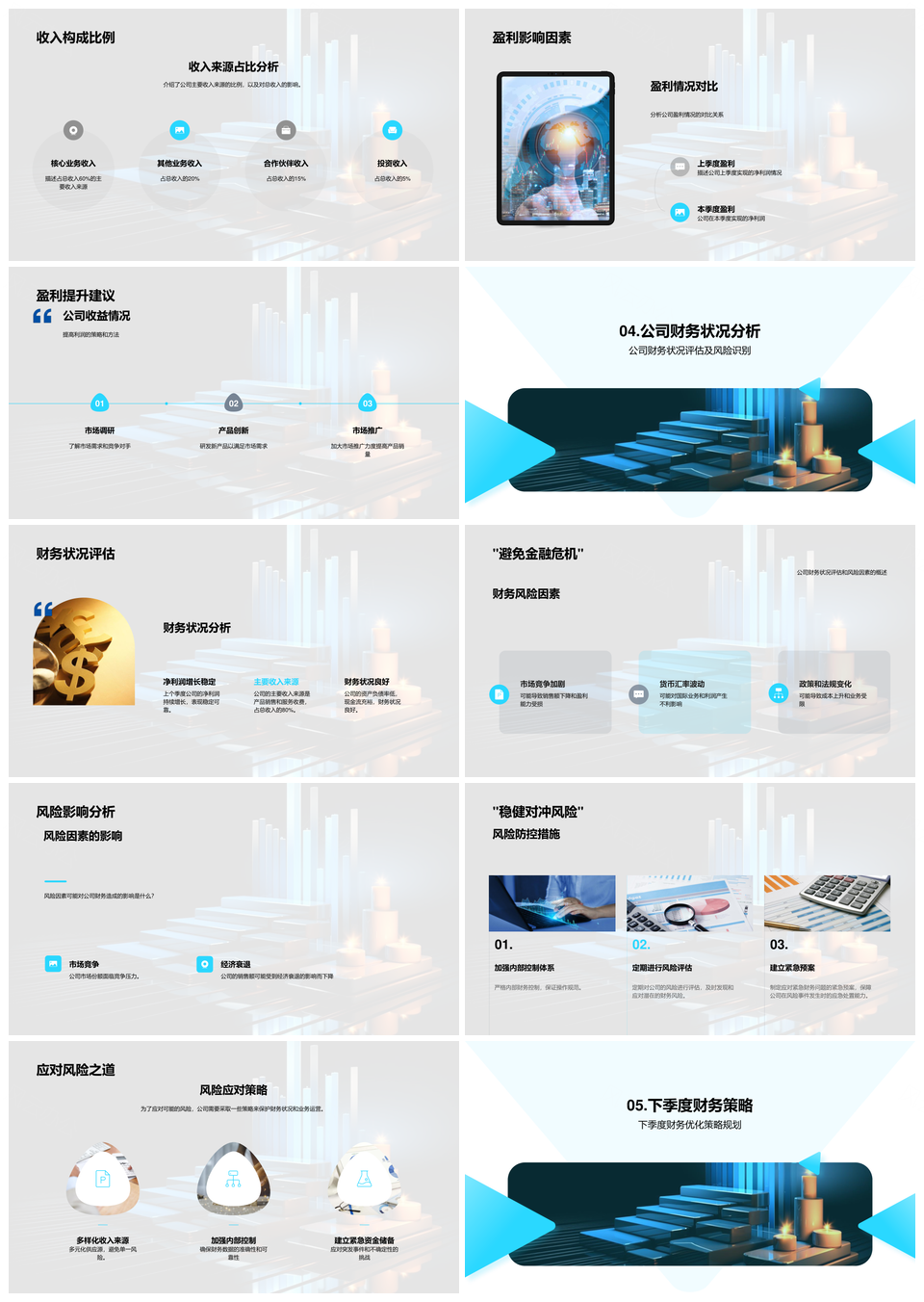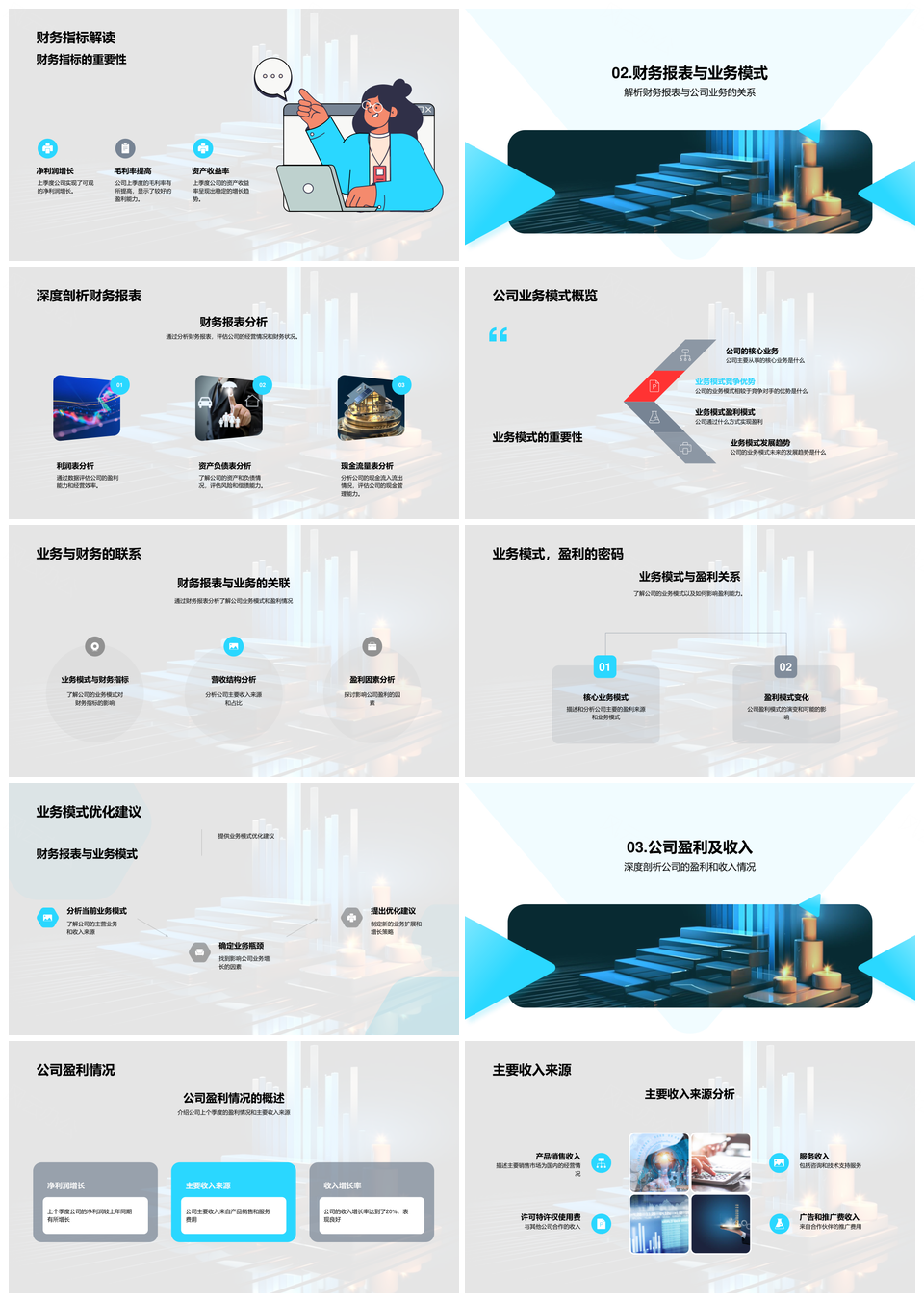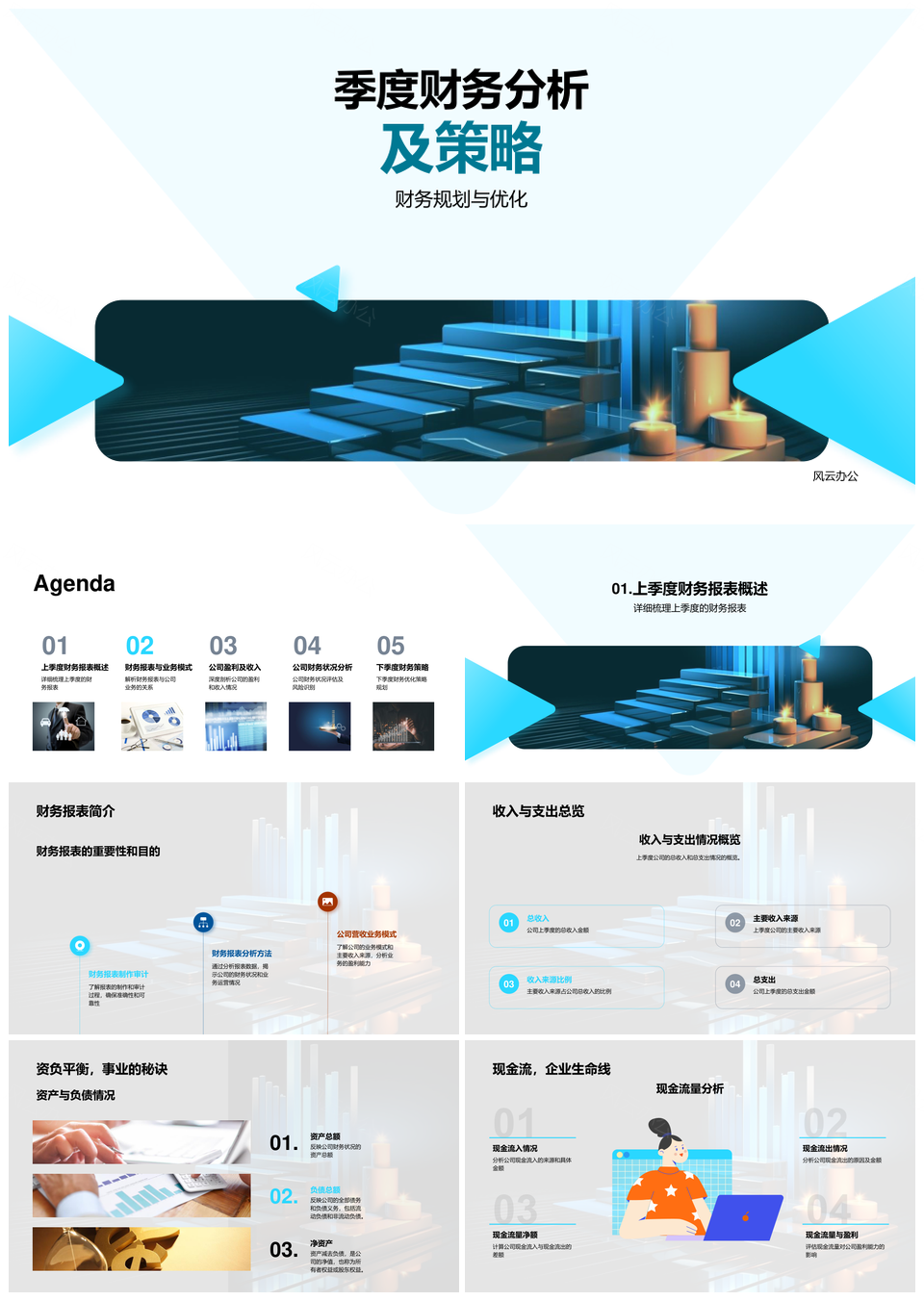 风云办公提供的季度财务分析规划业务模式盈利指标PPT模板,下载格式为pptx,一共33页,作品中文字及图均可以修改和编辑,图片更改请在作品中右键图片并更换,文字修改请直接点击文字进行修改。