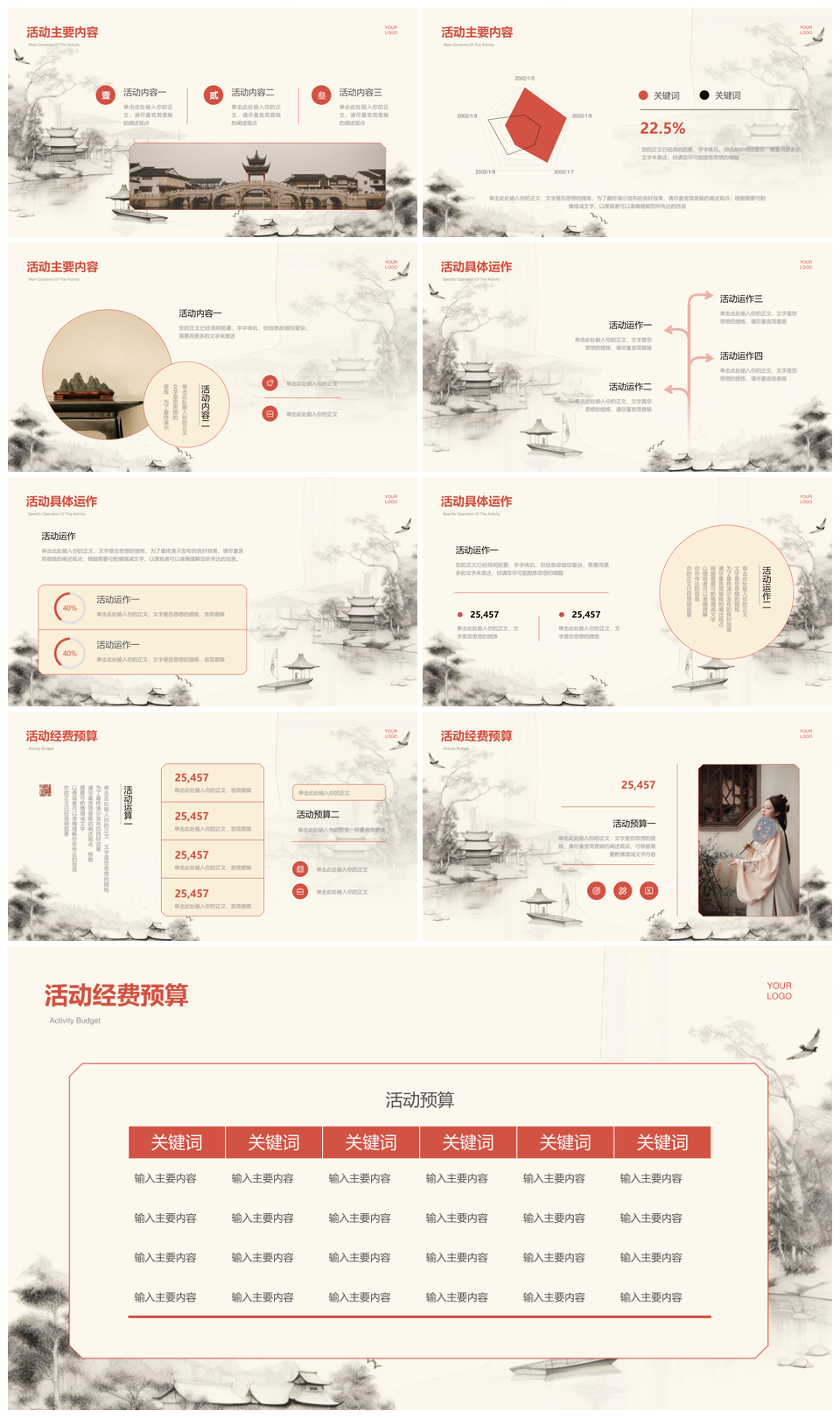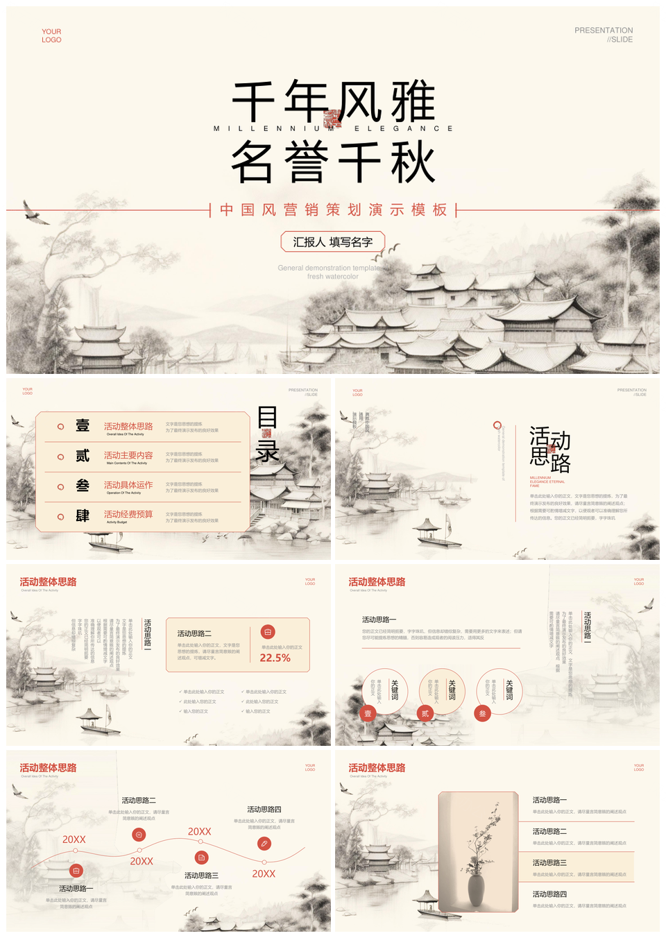 风云办公提供的高端中国风米色宣纸营销策划提案PPT模板,下载格式为pptx,一共17页,作品中文字及图均可以修改和编辑,图片更改请在作品中右键图片并更换,文字修改请直接点击文字进行修改。