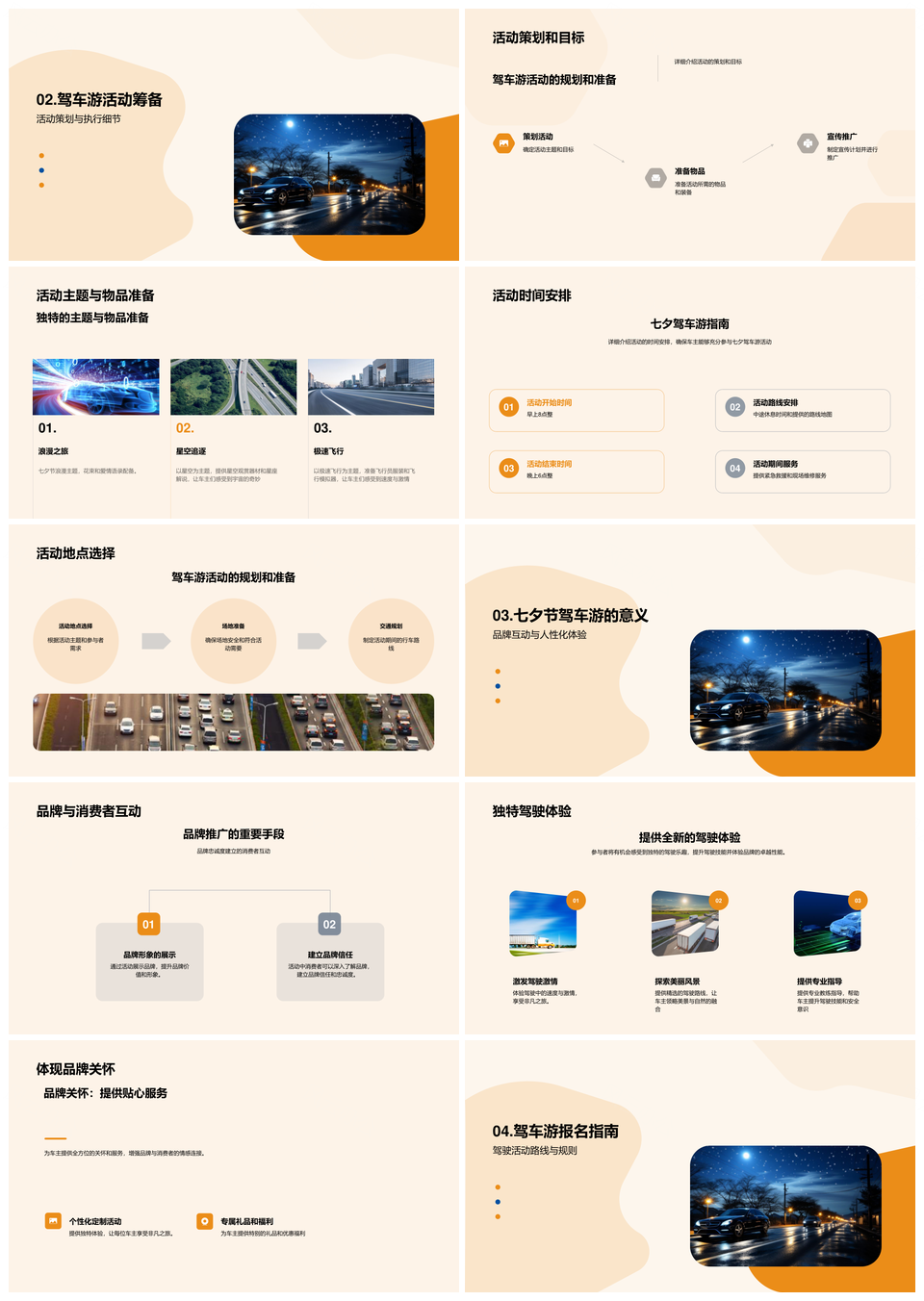 风云办公提供的七夕汽车驾游提升品牌忠诚互动体验PPT模板,下载格式为pptx,一共27页,作品中文字及图均可以修改和编辑,图片更改请在作品中右键图片并更换,文字修改请直接点击文字进行修改。