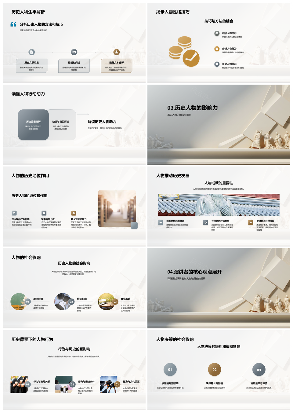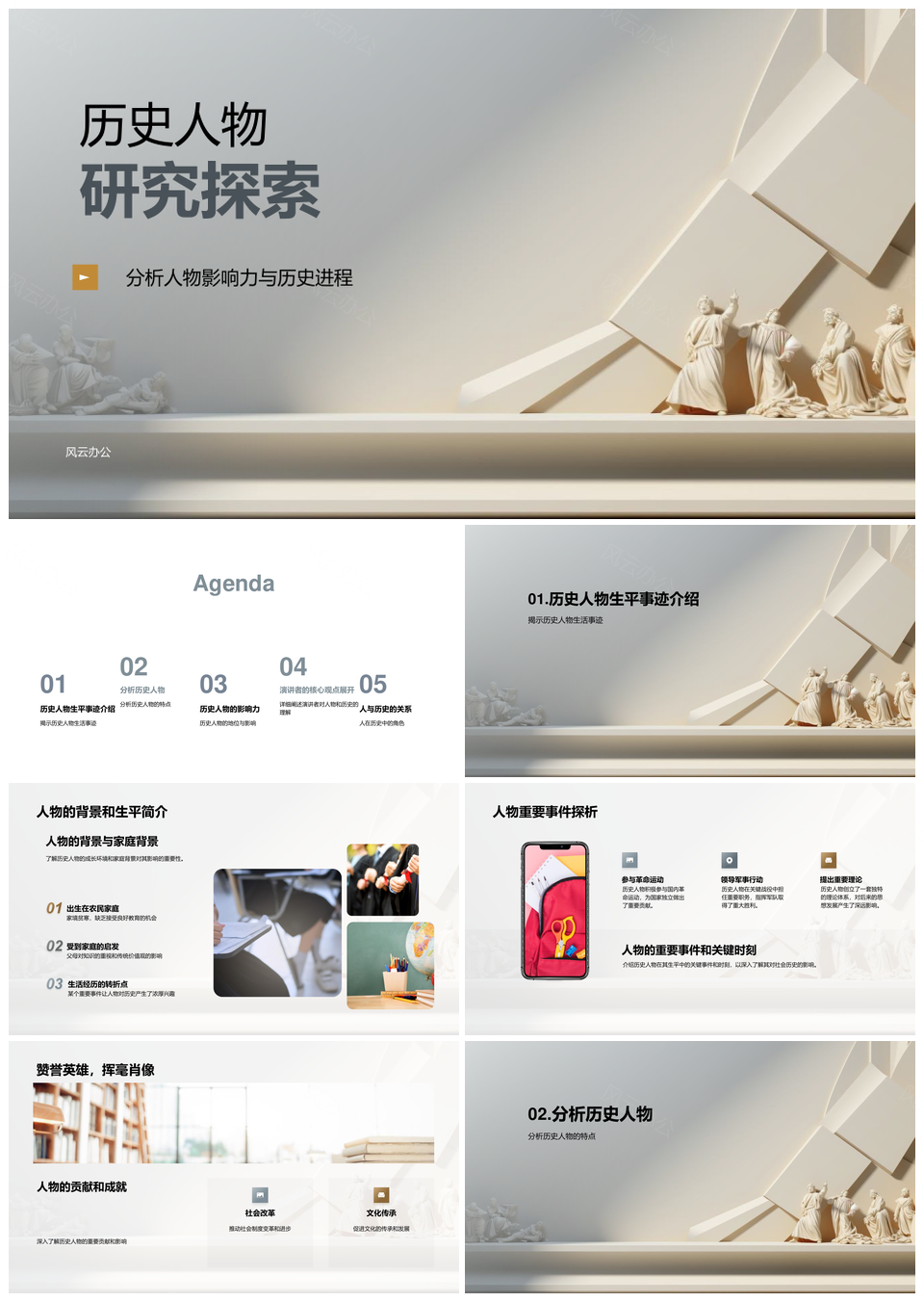 风云办公提供的历史人物贡献成就与古代卷轴影响进程PPT模板,下载格式为pptx,一共23页,作品中文字及图均可以修改和编辑,图片更改请在作品中右键图片并更换,文字修改请直接点击文字进行修改。