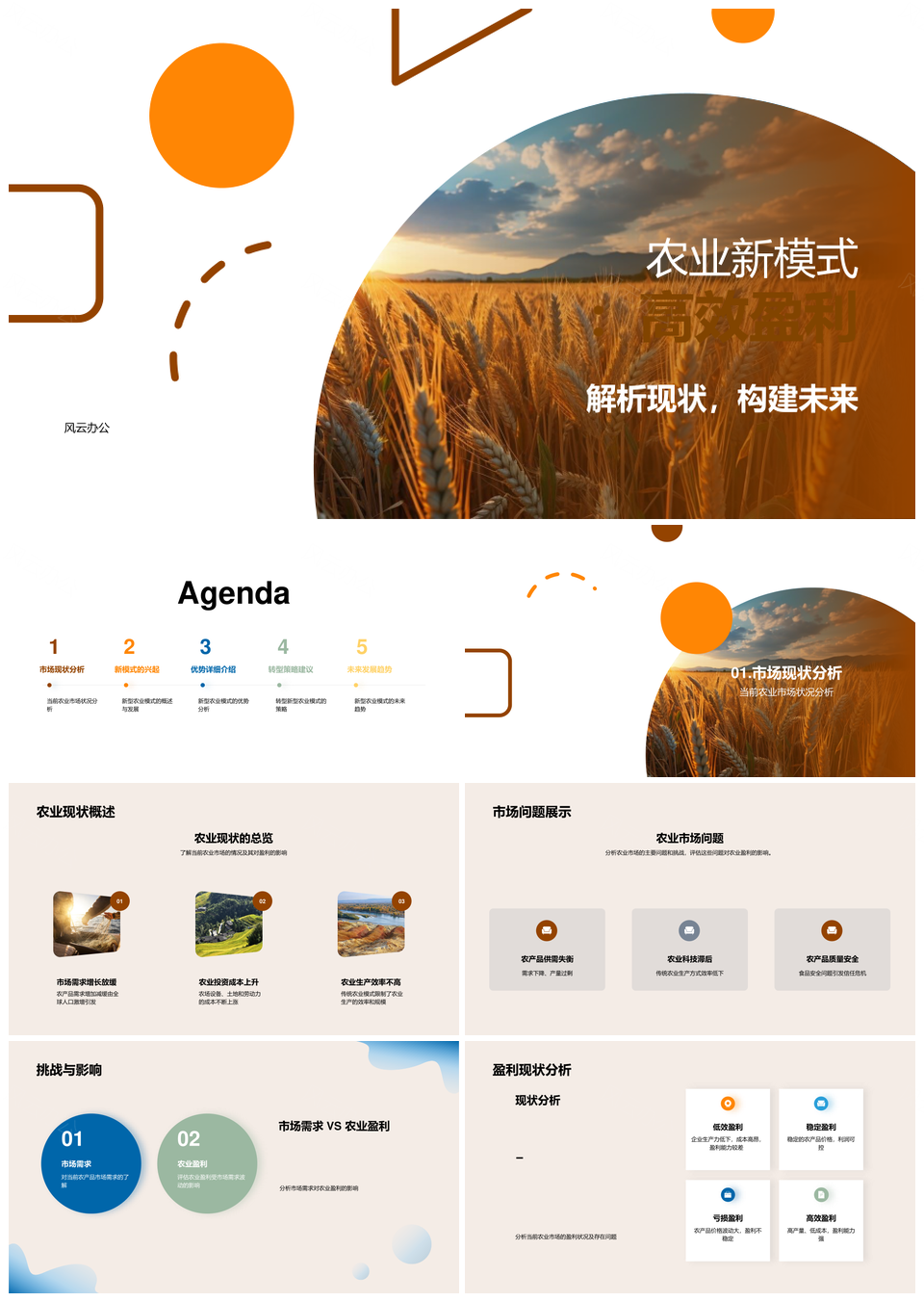 风云办公提供的农业高效盈利新模式科技趋势分析PPT模板,下载格式为pptx,一共26页,作品中文字及图均可以修改和编辑,图片更改请在作品中右键图片并更换,文字修改请直接点击文字进行修改。