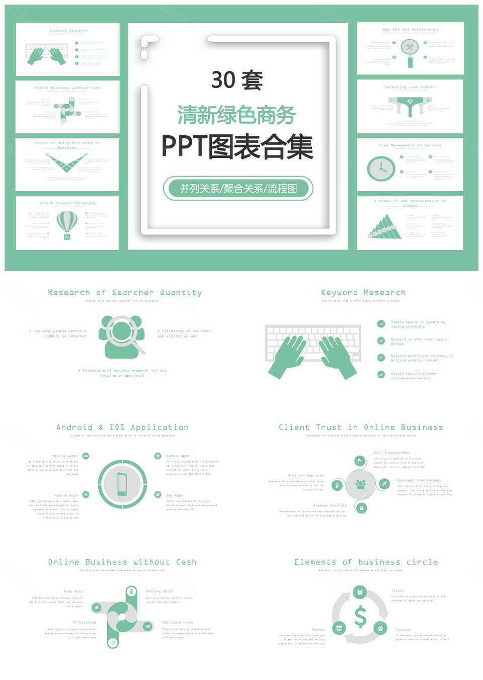 这是一张清新绿色商务PPT模板,包含清新、绿色、商务等主题内容,也可用作清新、绿色、商务 清新绿色商务、清新绿色、清新商务、绿色商务等PPT场景使用。 风云办公提供的清新绿色商务PPT模板,下载格式为pptx,一共31页,作品中文字及图均可以修改和编辑,图片更改请在作品中右键图片并更换,文字修改请直接点击文字进行修改。