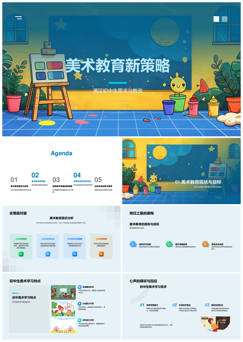 初中美术教改项目反转课堂资源多样化新策略PPT模板推荐