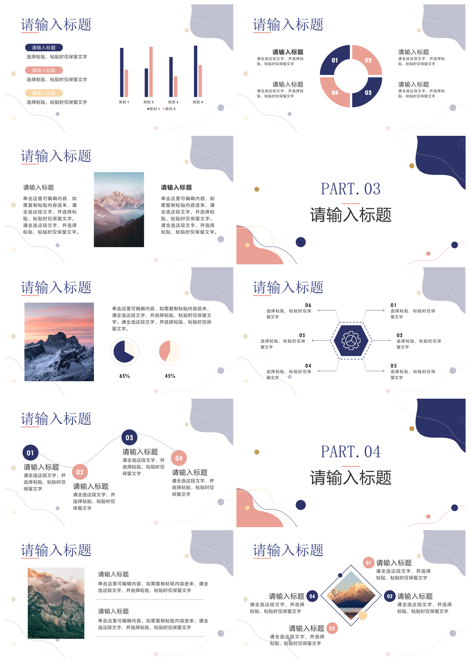 2025莫兰迪清新简约几何时尚蓝粉黄工作汇报PPT模板推荐