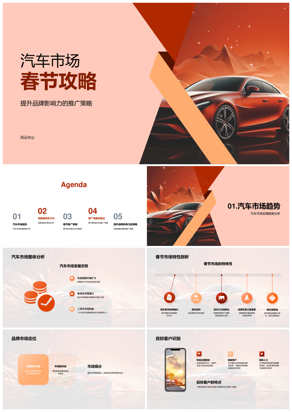 汽车市场春节推广策略品牌定位目标客户PPT模板推荐