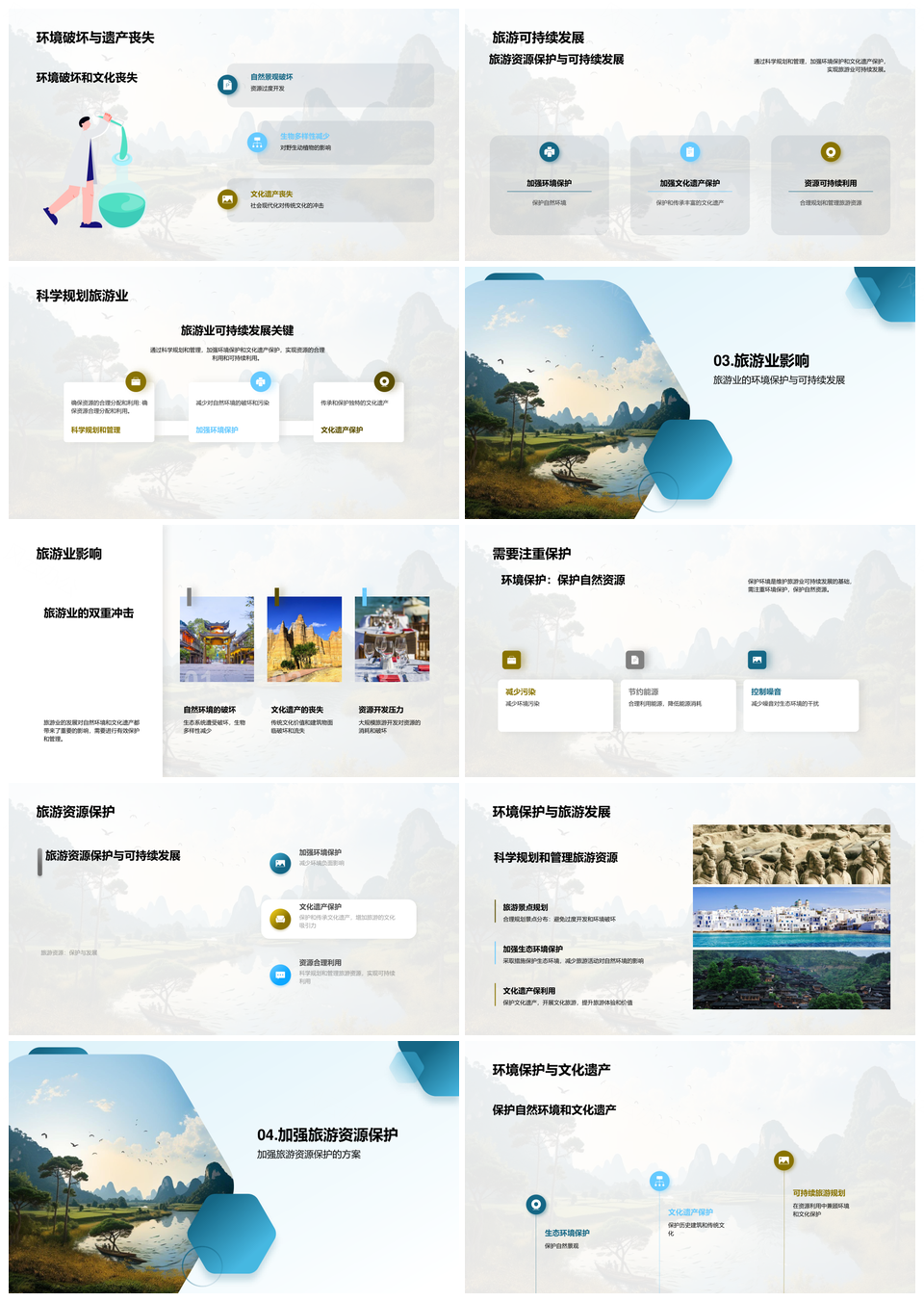 风云办公提供的旅游资源保护可持续发展管理路径PPT模板,下载格式为pptx,一共22页,作品中文字及图均可以修改和编辑,图片更改请在作品中右键图片并更换,文字修改请直接点击文字进行修改。