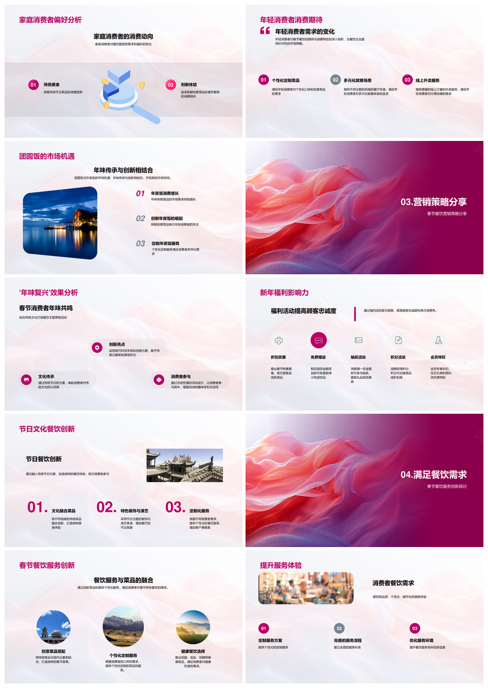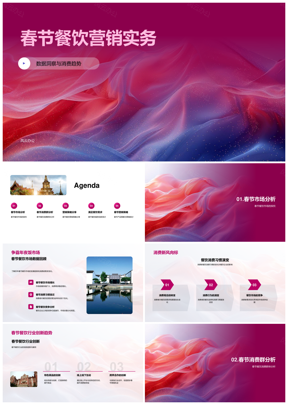风云办公提供的春节餐饮市场消费趋势与创新策略PPT模板,下载格式为pptx,一共23页,作品中文字及图均可以修改和编辑,图片更改请在作品中右键图片并更换,文字修改请直接点击文字进行修改。