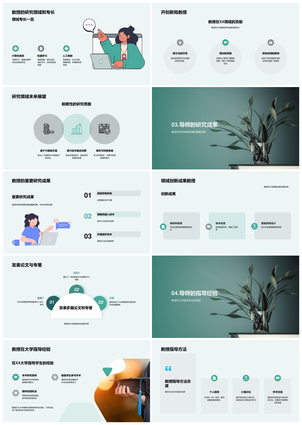 XX大学硕士生导师研究教学成果与著作PPT模板推荐