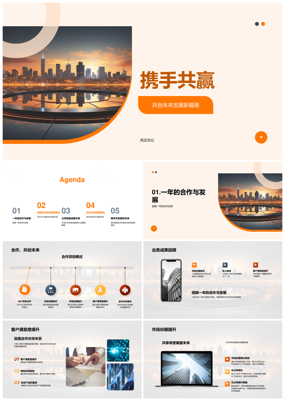 XYZ携手ABC共赢发展拓市场增收入PPT模板推荐