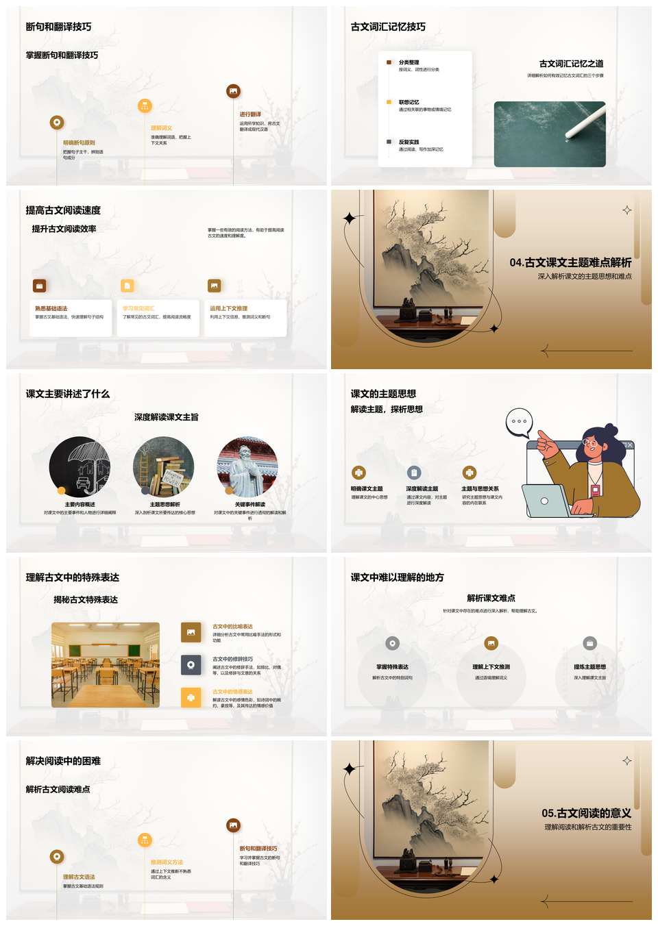 古文阅读指南发展流派特点背景断句翻译卷轴PPT模板推荐
