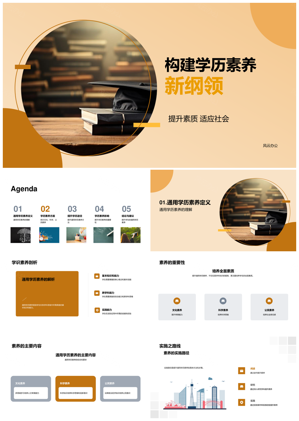 构建通用学历素养提升科学文化公民素质PPT模板推荐