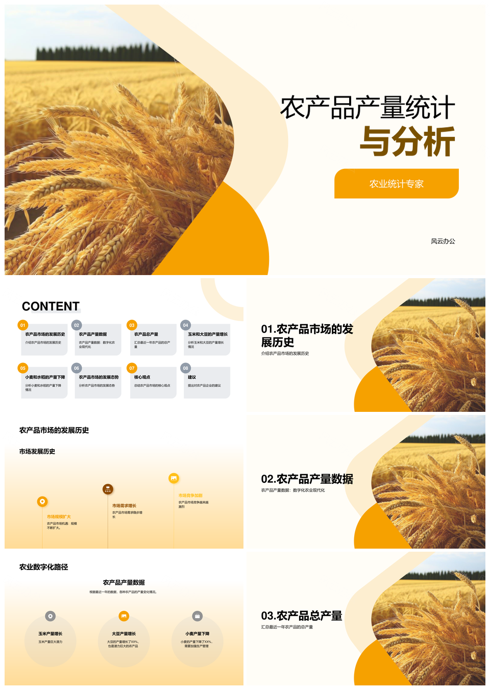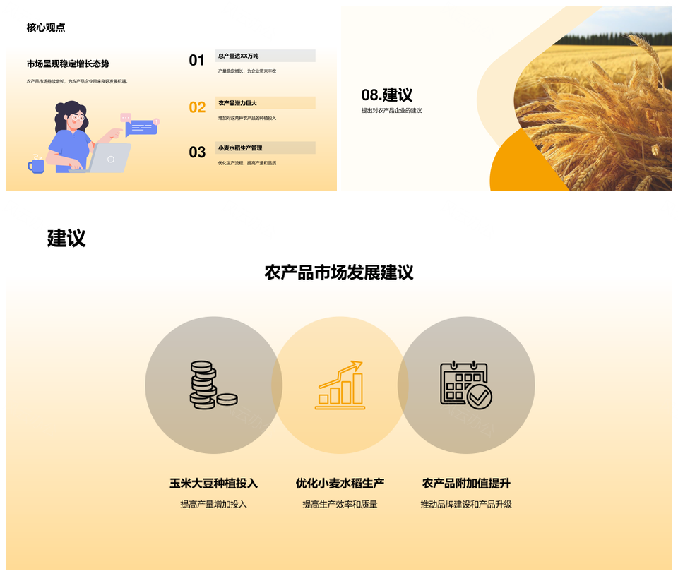 风云办公提供的农产品企业年度产量统计专家分析会议PPT模板,下载格式为pptx,一共21页,作品中文字及图均可以修改和编辑,图片更改请在作品中右键图片并更换,文字修改请直接点击文字进行修改。