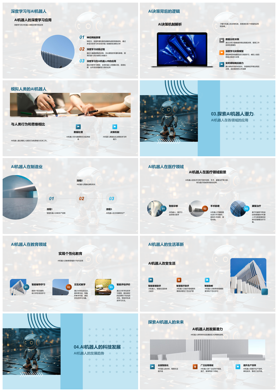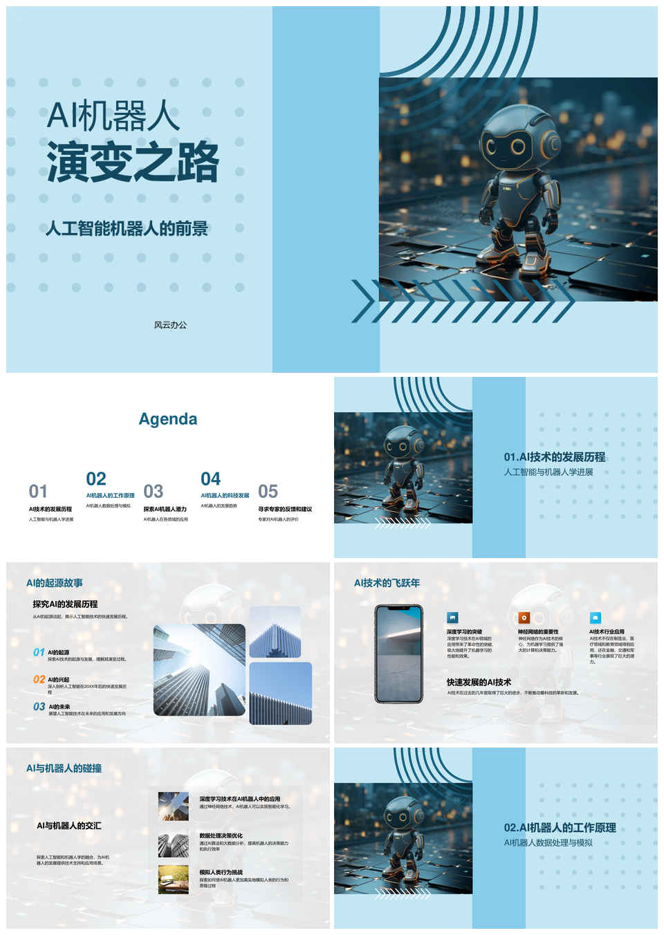 风云办公提供的人工智能机器人深度学习决策机制演进PPT模板,下载格式为pptx,一共24页,作品中文字及图均可以修改和编辑,图片更改请在作品中右键图片并更换,文字修改请直接点击文字进行修改。