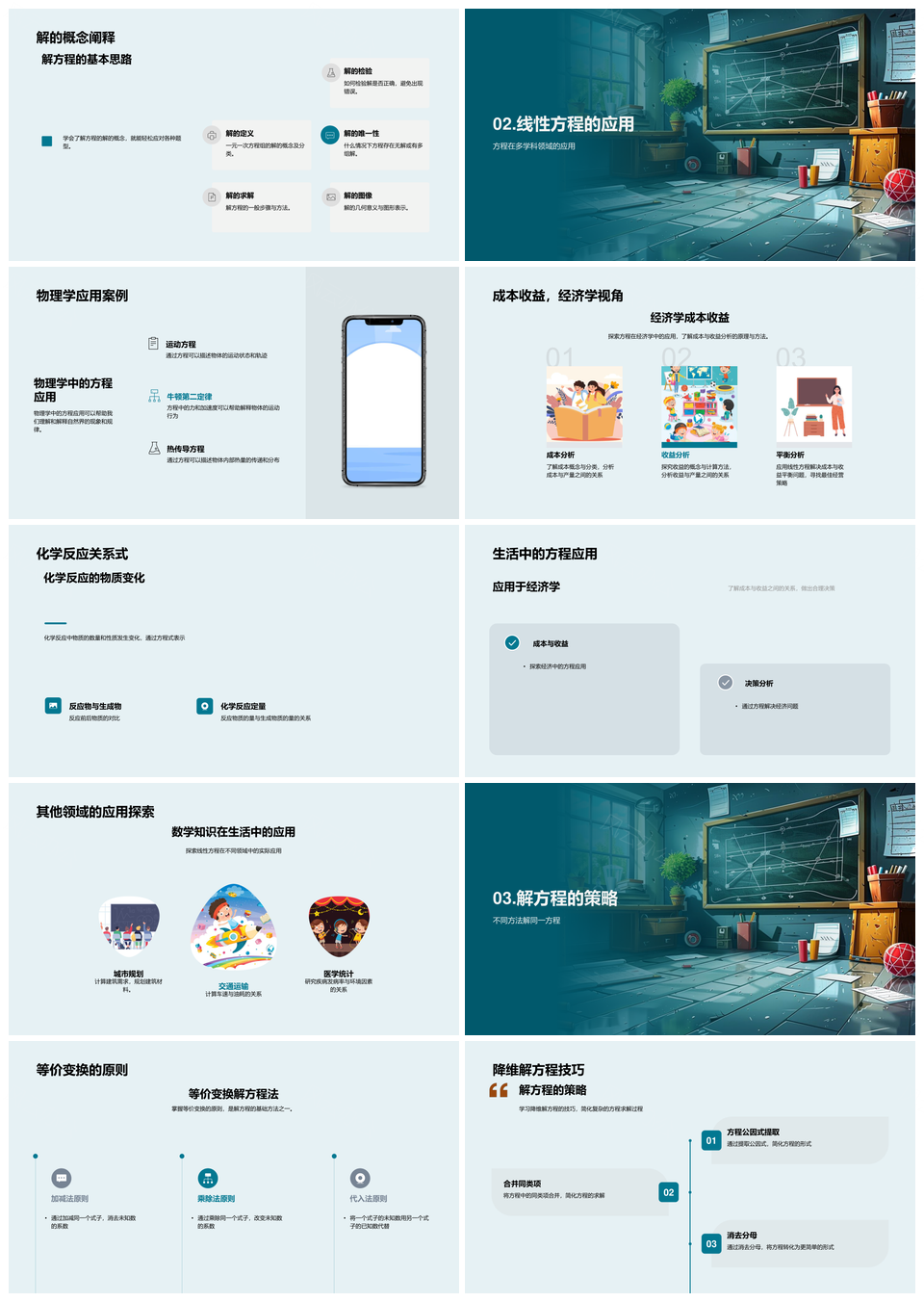 线性方程教学一元二元系数常数项物经解析PPT模板推荐