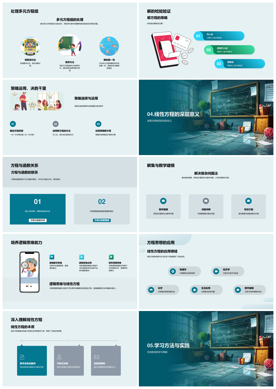这是一张线性方程教学一元二元系数常数项物经解析PPT模板,包含线性方程、教学、一元、二元、系数、常数项、物经、解析等主题内容,也可用作线性方程教学一元二元系数常数项、一元二元系数常数项物经、线性方程教学一元二元、教学一元二元系数常数项、一元二元系数常数项、线性方程教学系数常数项、系数常数项物经解析、常数项物经解析、一元二元系数常数、教学系数常数项物经、二元系数常数项物经、线性方程教学解析、物经解析、线性方程教学、一元二元系数等PPT场景使用。 风云办公提供的线性方程教学一元二元系数常数项物经解析PPT模板,下载格式为pptx,一共33页,作品中文字及图均可以修改和编辑,图片更改请在作品中右键图片并更换,文字修改请直接点击文字进行修改。