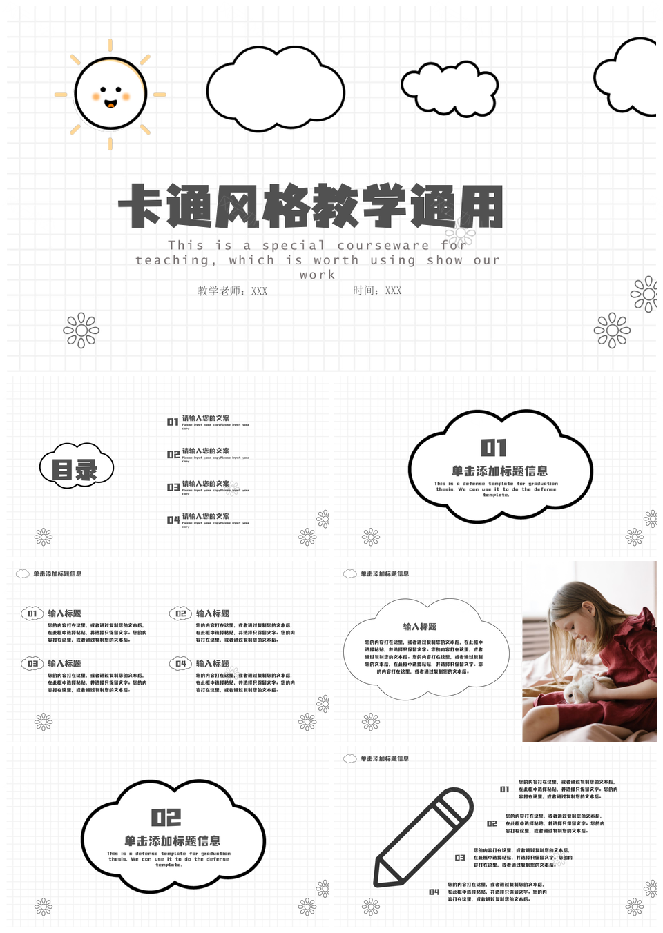 蓝色教学课件可爱卡通教育教学课件实用PPT模板