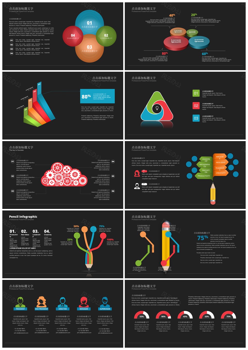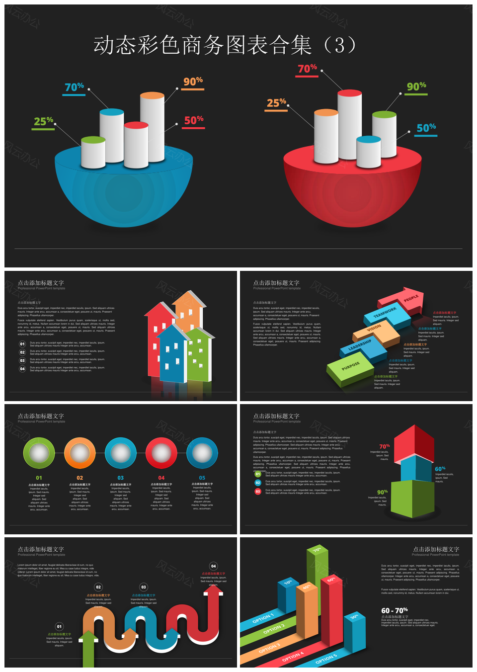 彩色动态精美设计多图表年度总结商业计划书商务PPT模板