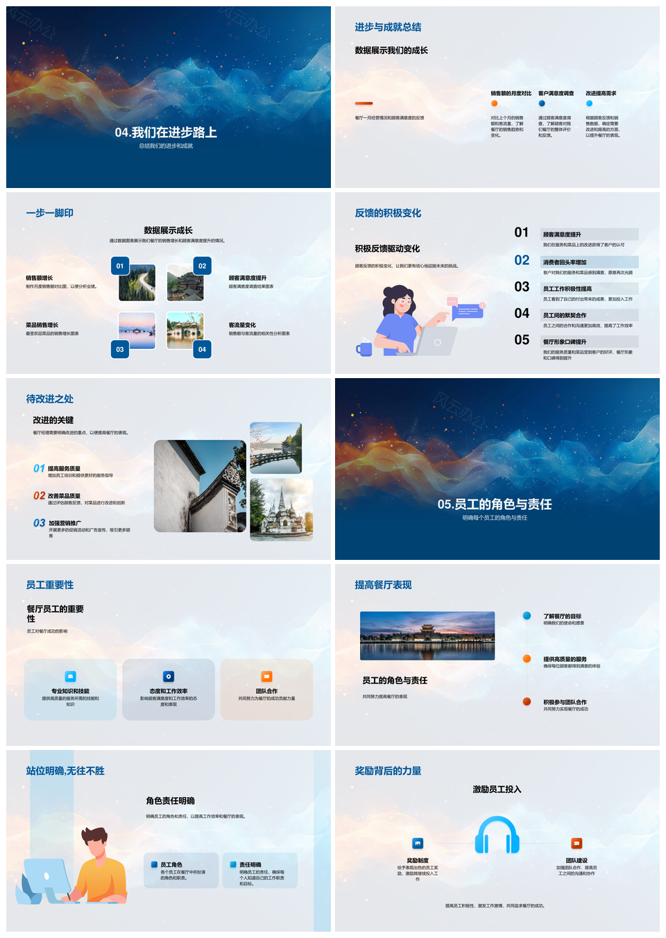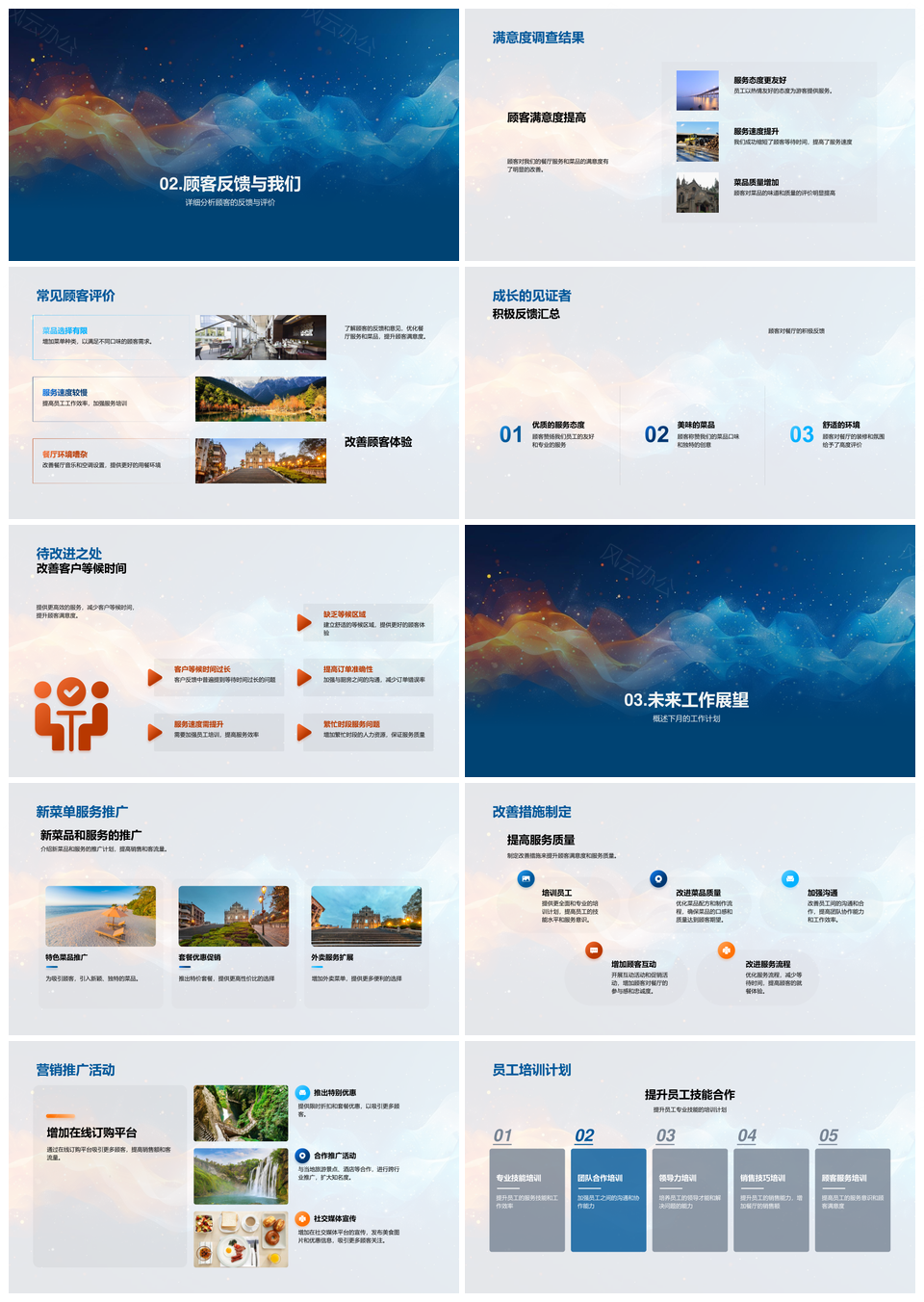 2025餐厅经营月报销售客流菜品推广服务培训反馈总结PPT模板推荐