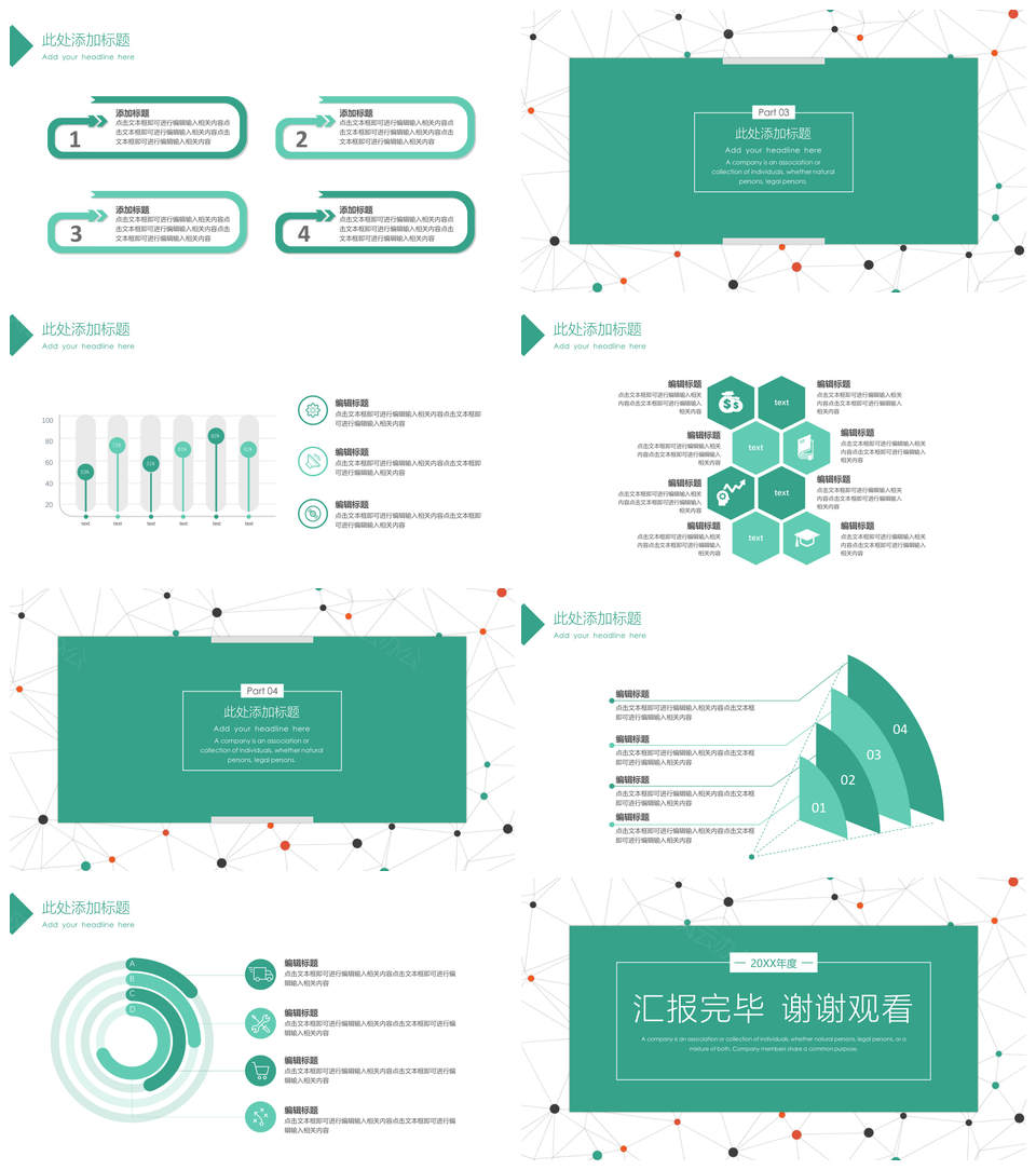 绿色小清新简约商务学术风通用精致通用PPT模板